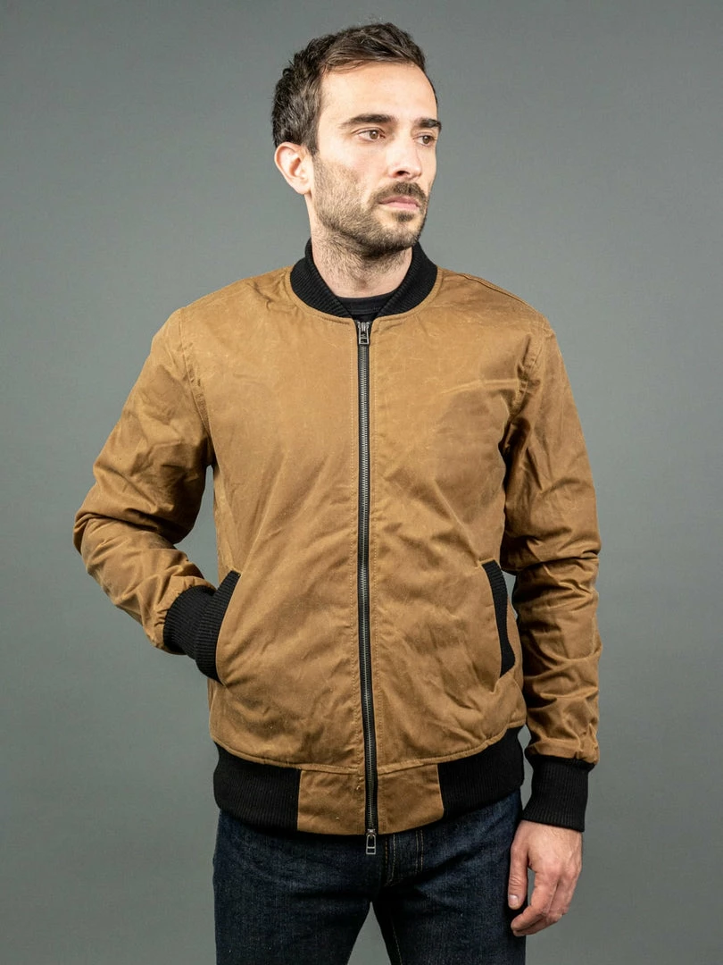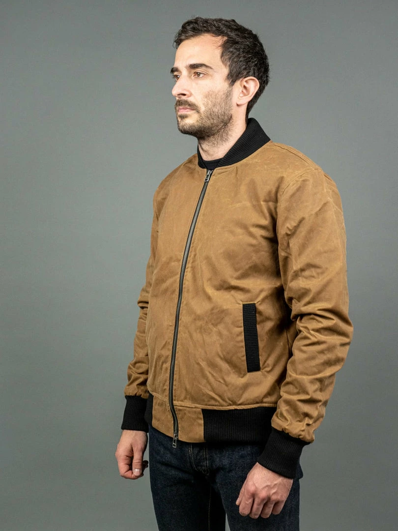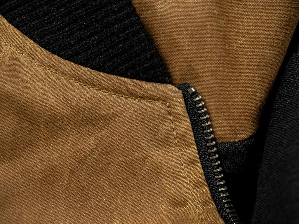 The Stadium Jacket has been an outerwear staple that 3sixteen has been making since 2008. Few wardrobe icons give off an aura of success quite like this jacket. It’s a slim cut baseball jacket made of heavy 8oz. Field Tan waxed canvas that repels wind and rain.
