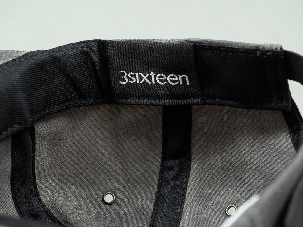 3sixteen waxed canvas baseball cap features a deeper crown, adjustable leather strap, and gunmetal hardware.