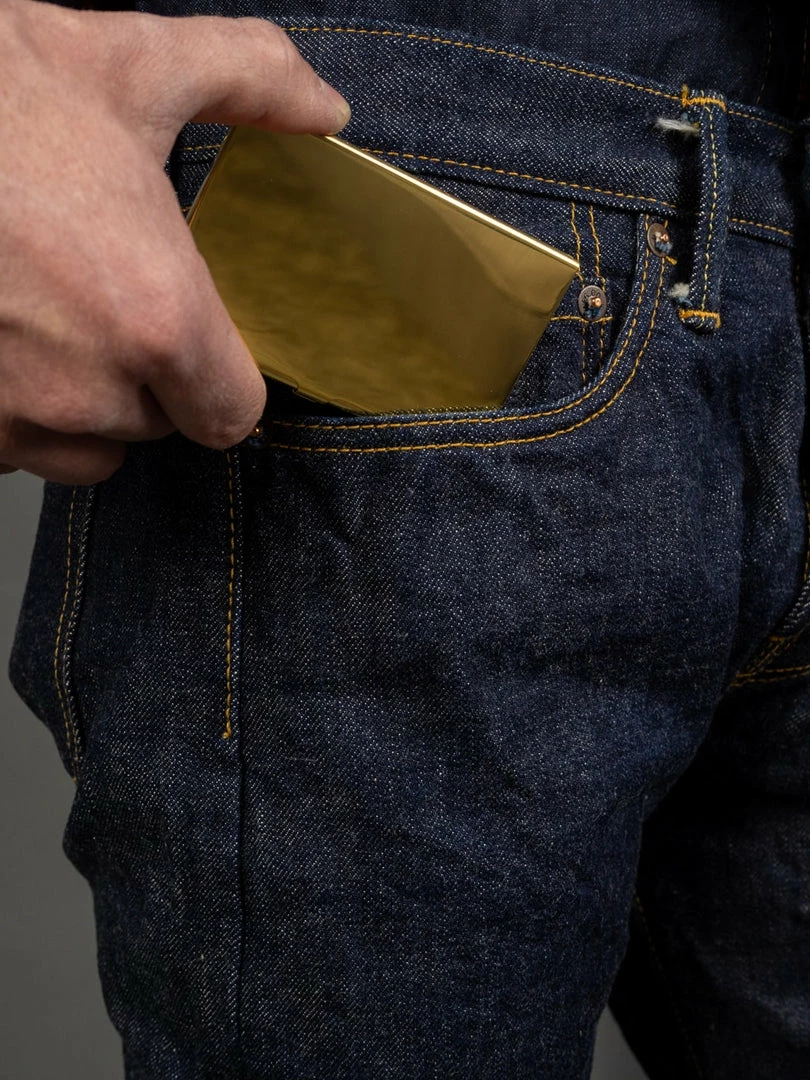 This solid brass business card case and compact mirror are press-moulded in Tokyo. It is hand-crafted and polished by a speciality metal craft company founded in 1953 in Tokyo.