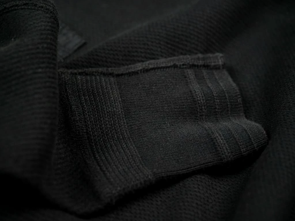 The fabric is ultra-soft and smooth. It has been woven on vintage circular knitting machines. The lining is a cord lane type knit that features fine streaks with a ridge-shaped knitting structure close to the skin and features excellent heat retention similar to that of the best technical shirts, with the plus of having a 100% natural material such as cotton.