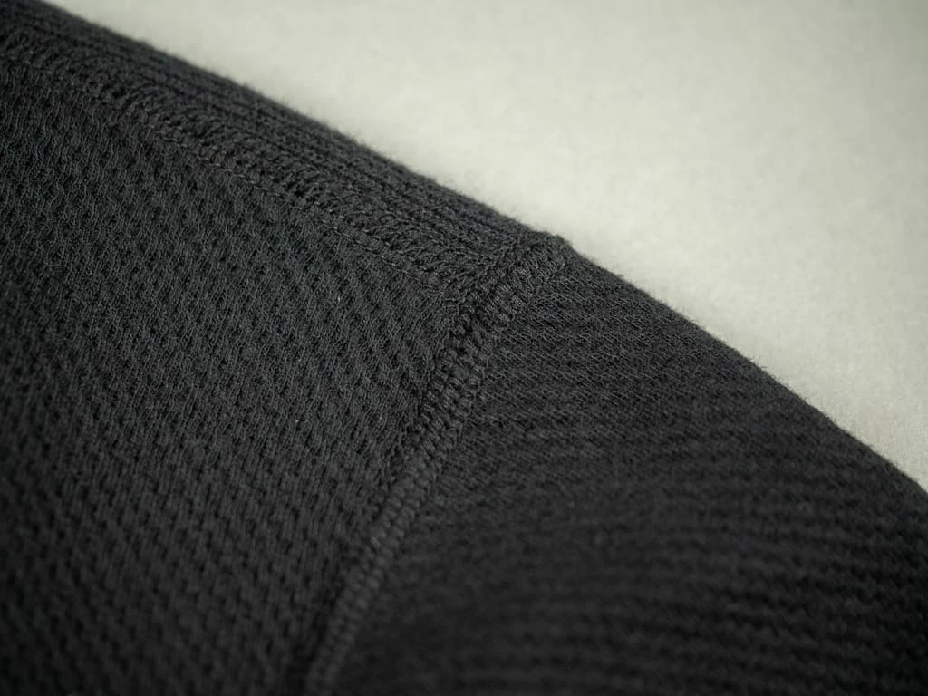 The construction is top-notch and time-consuming. It features a flat seam sewing with 4 needles of cotton thread that requires skill. The silhouette is not the tight fit peculiar to thermal shirts, but it is moderate to the body’s width. A regular fit that gives you plenty of space and is easy to use as a single piece or as an inner layer.