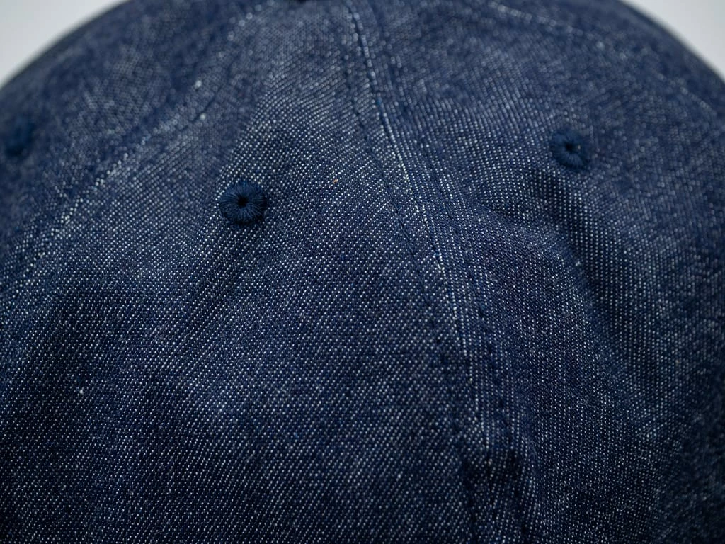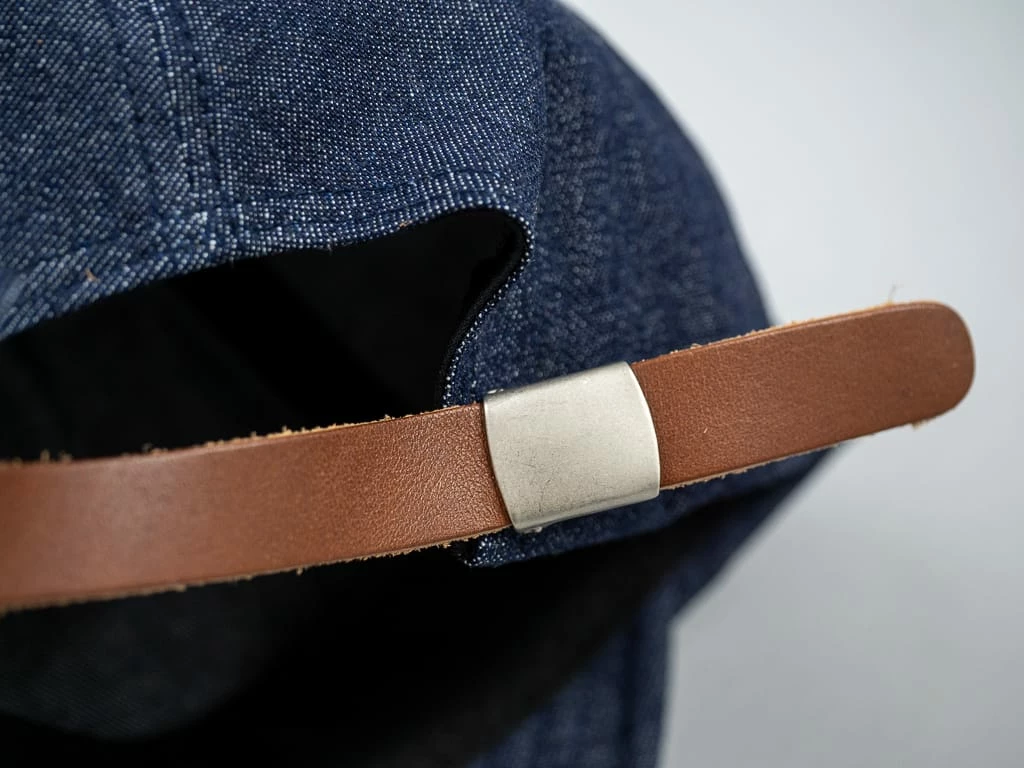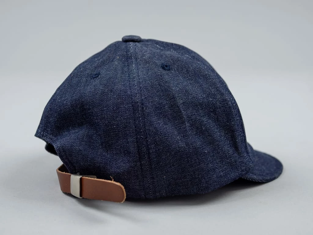You can cap off your look with this dark indigo denim in the classic six-panel mechanic style with a soft short peak. This cap is adjustable with a leather strap and decorated with a Might Shine label on the reverse. Additionally, six ventilation holes add functionality.