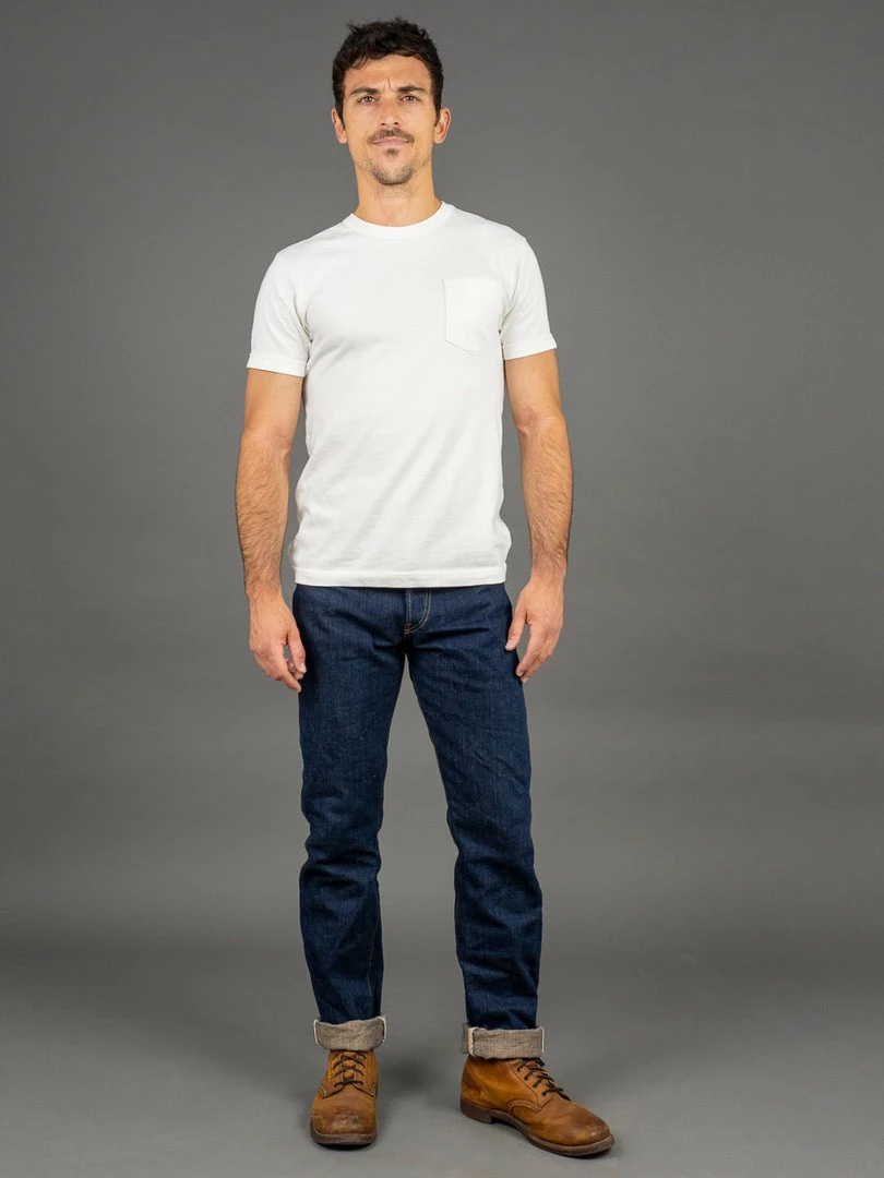 - 16oz unsanforized natural indigo rope dyed Japanese selvedge denim. It is aone-wash version so expect no shrinkage