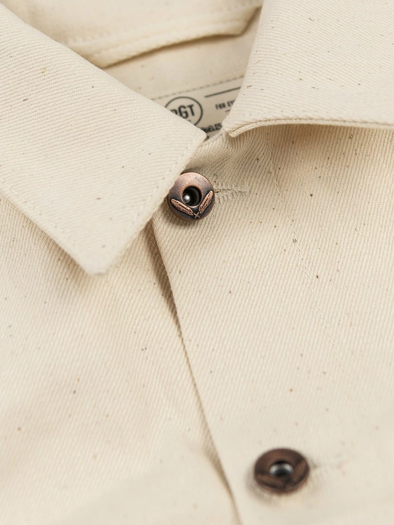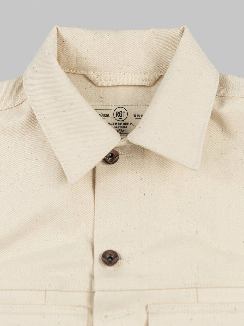 A great looking take on the classic trucker jacket, RGT has taken 14oz Japanese sanforized ecru denim from Nihon Menpu, highlighting all the beautiful small, brown flecks remnants of the cotton plant. It is based on the iconic Type III with some contemporary twists.