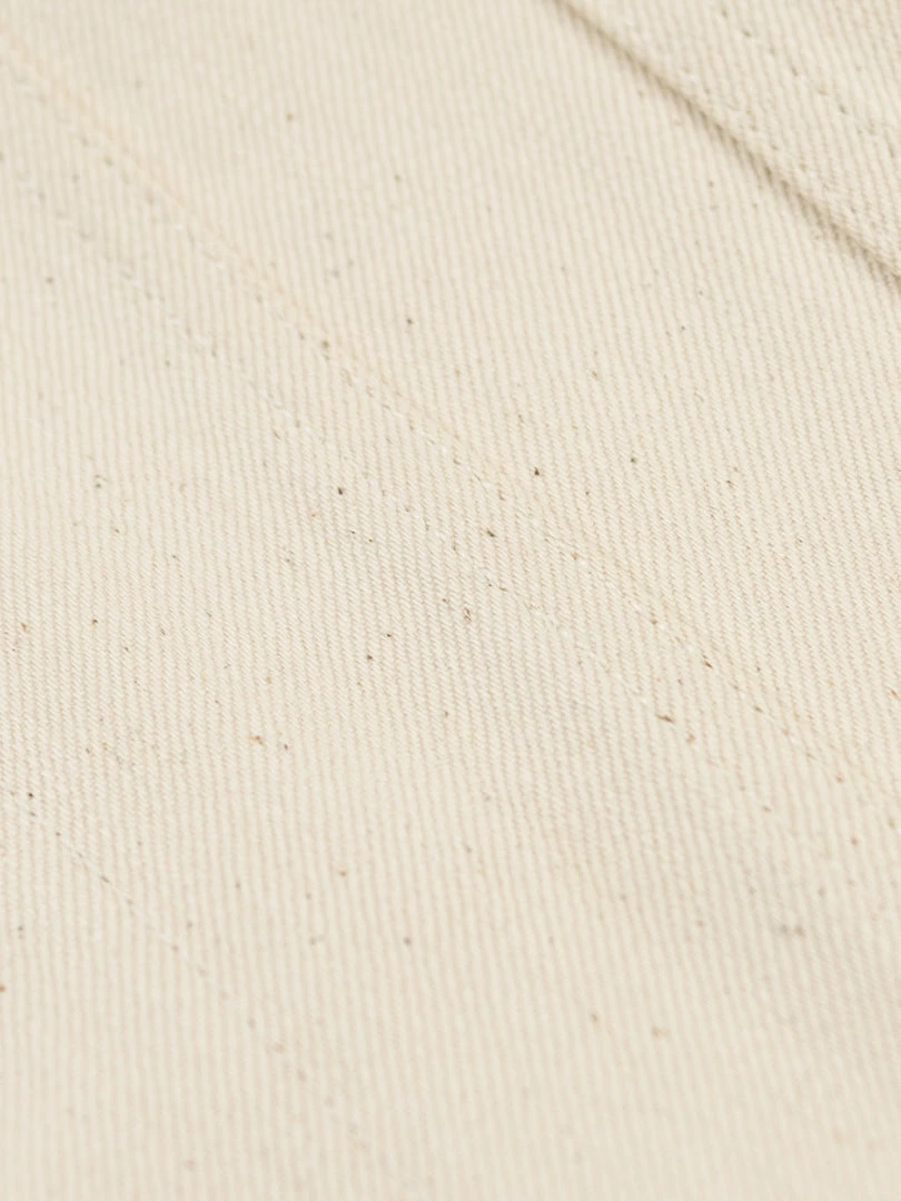 • 14oz sanforized Ecru Japanese selvedge denim from Nihon Menpu. It is sanforized, so expect no shrinkage