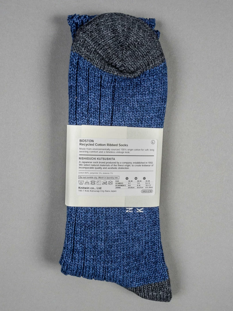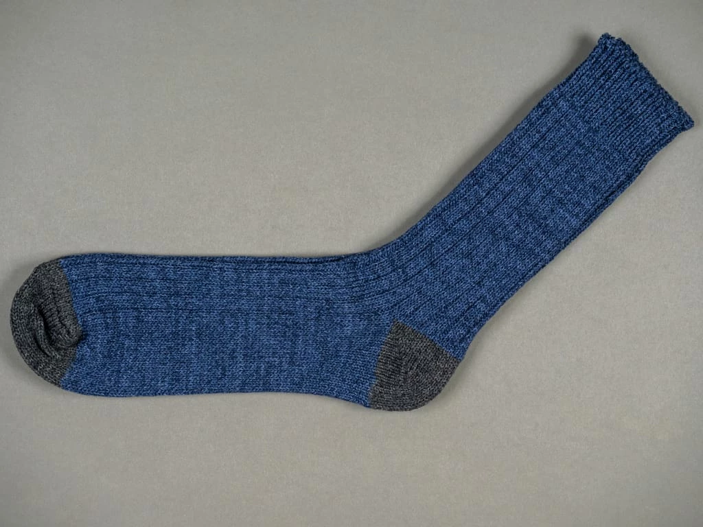 These socks are made from environmentally sourced 100% virgin cotton for soft, long-wearing comfort and a timeless vintage look. A cosy, comfy ribbed sock made with recycled cotton, features colour contrast at the toe and heel.