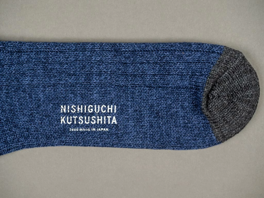 Using yarn spun from shorter fibres, Nishiguchi gets that rustic look for socks that pair perfectly with casual denim wear.