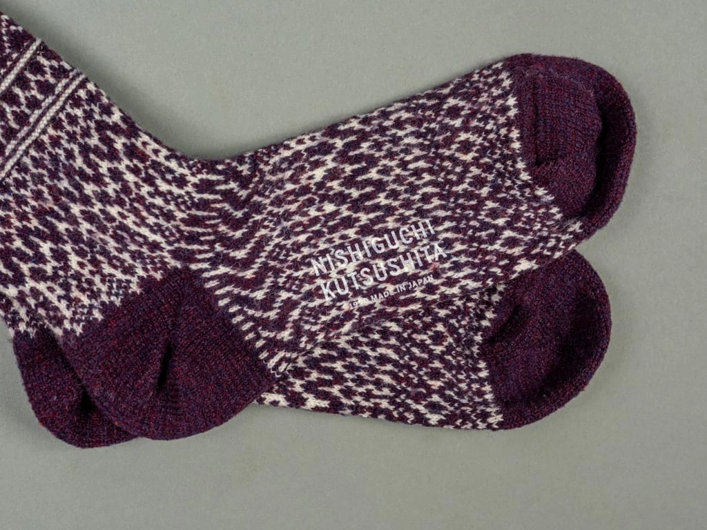 The history of this Japanese sock brand began in 1950 just after World War II. Katsuji Nishiguchi founded the company with a single hand-operating knitting machine in Katsuragi, Nara prefecture. The brand’s catchphrase “Hakuhito omoi” conveys a deep consideration for the people who purchase and enjoy the brand’s products. Everything, including the materials, designs, knitting methods and prices is thoroughly vetted. By demonstrating a commitment to high-quality natural materials and combining new and old technologies and decades of experience, Nishiguchi Kutsushita creates true timeless classics of incomparable quality and aesthetic distinction.