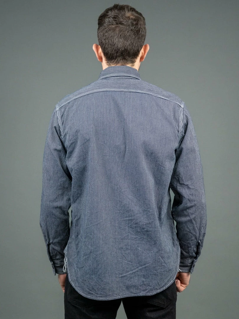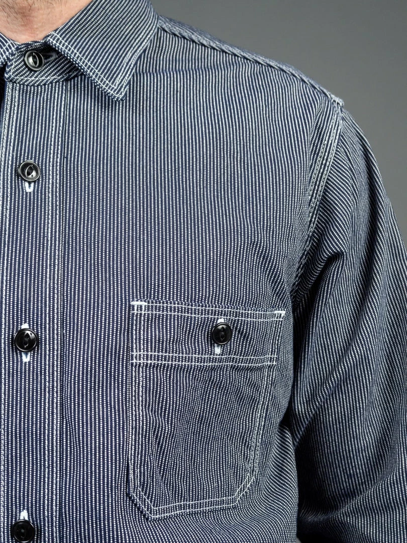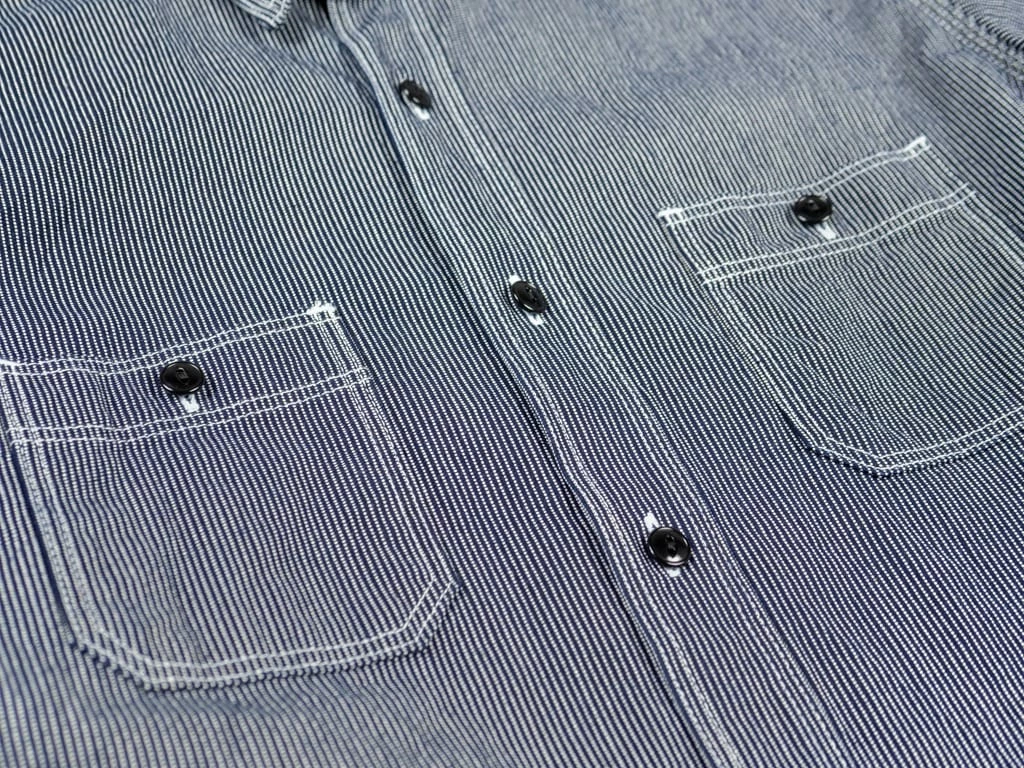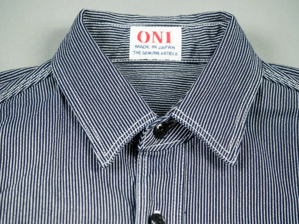 This is the first time that ONI has produced a Hickory workshirt. This beautiful piece is based on the classic Hickory fabric popularized by American railway workers at the turn of the century. The indigo and white hickory stripe is an instantly recognizable fabric, both iconic and vintage.