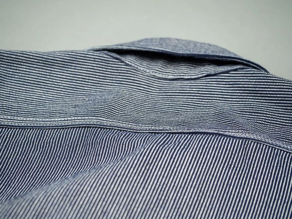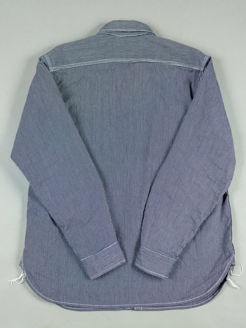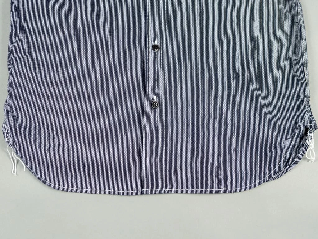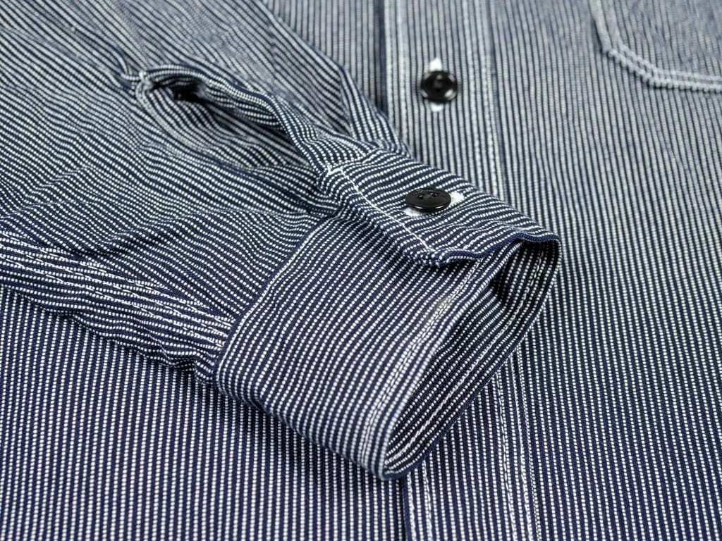 This is the first time that ONI has produced a Hickory workshirt. This beautiful piece is based on the classic Hickory fabric popularized by American railway workers at the turn of the century. The indigo and white hickory stripe is an instantly recognizable fabric, both iconic and vintage.