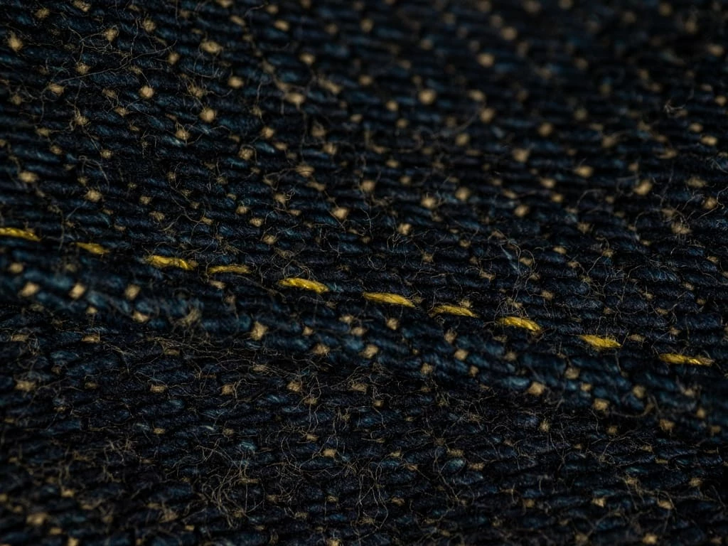 The warp yarn is indigo rope-dyed. The weft yarn is beige dyed cotton. The fading potential is incredible and will showcase a variety of shades ranging over different tones of blue.