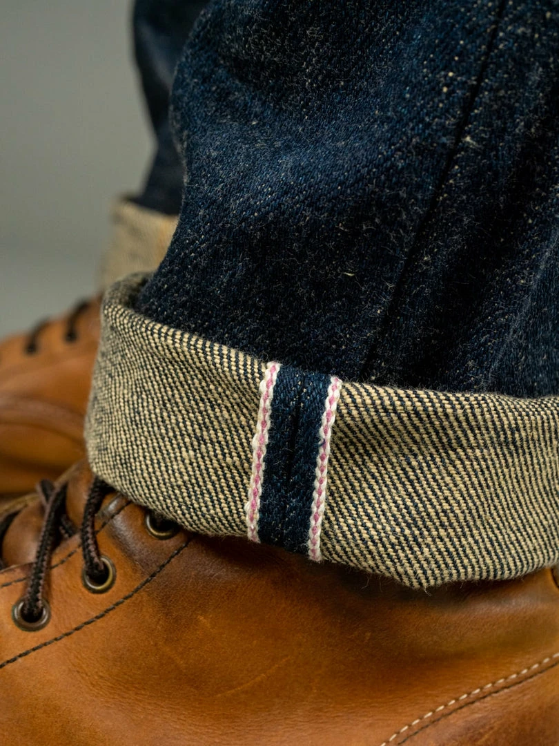 One of the most important types of denim in recent years has been Oni’s Secret Denim. First launched in 2012, the Secret Denim has been one of the most desirable denim fabrics by Denim Heads around the world due to its unique texture and incredible softness and comfort. Only Oishi-San can produce this denim, and no one else can reproduce it. He uses extra-thick yarns of three different kinds of cotton woven at ultra-low tension on a vintage shuttle loom. The result is a beefier, extremely knotty unsanforized 20oz fabric with a fantastic slub, roughness and hairy texture.