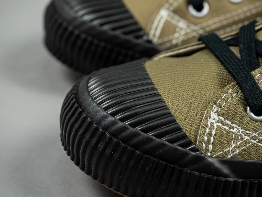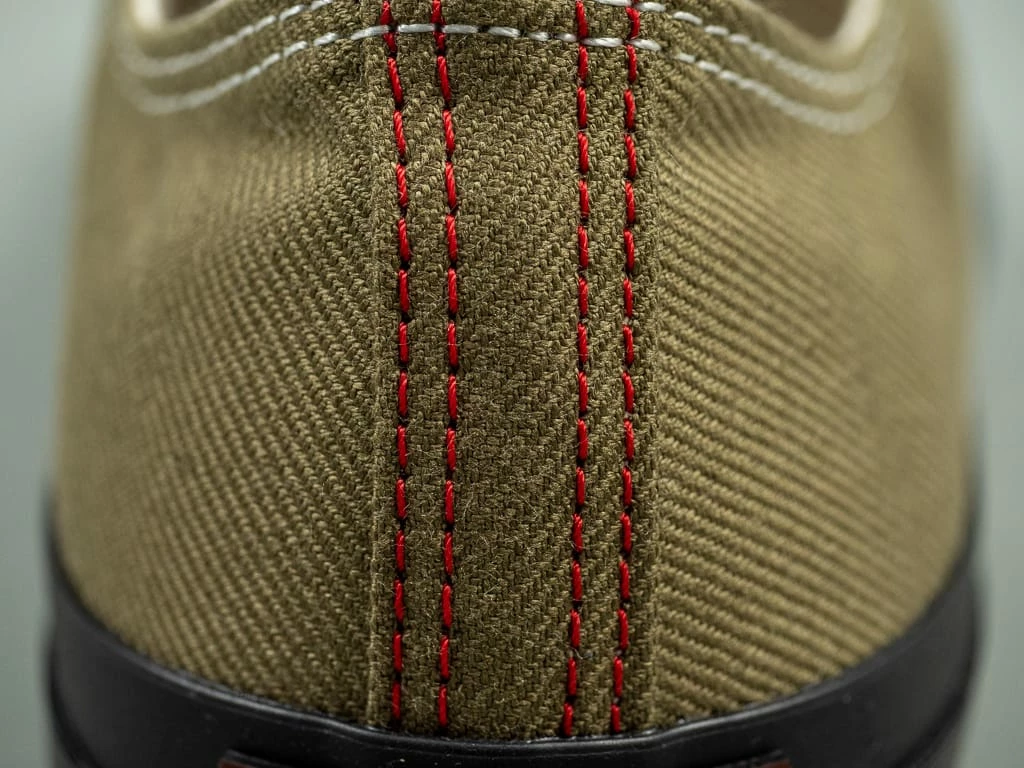 The Shellcap Low Sneakers from PRAS (Paradise Rubber Athletic Shoes) have everything you could want from a made-in-Japan low-top sneaker. This season, the brand has adopted a reproduction of the iconic French Army M47 fabric, a heavyweight olive serge manufactured in the late 1940s. The stamp on the left foot, inspired by military contract numbers, is all hand-stamped on each pair.