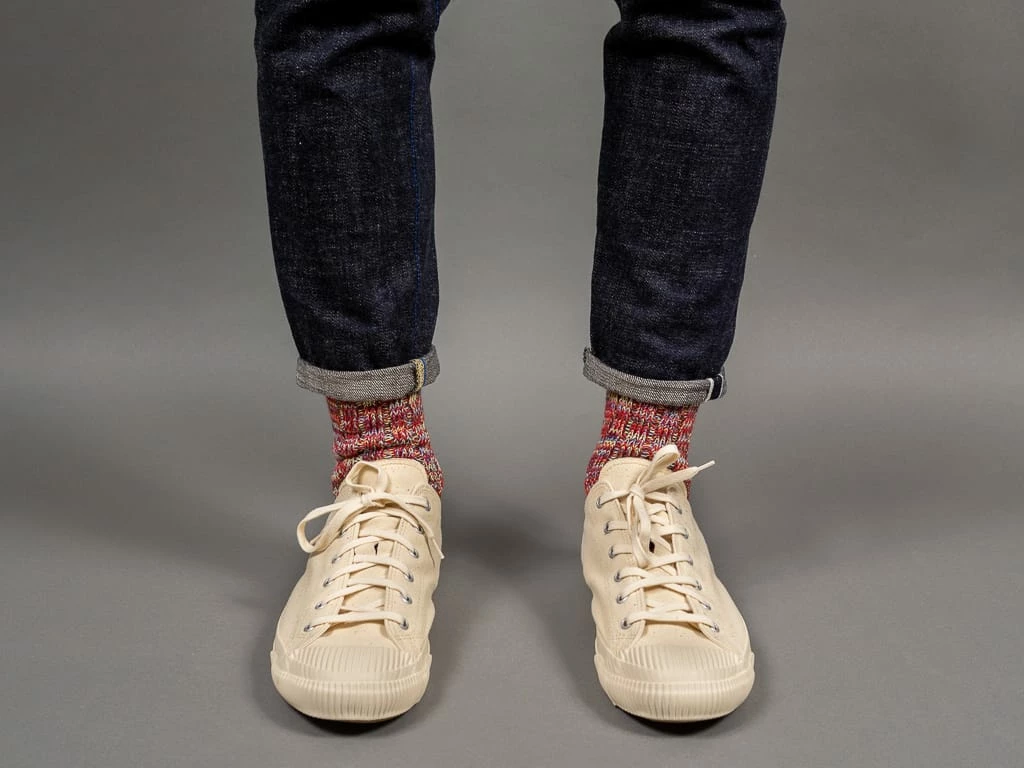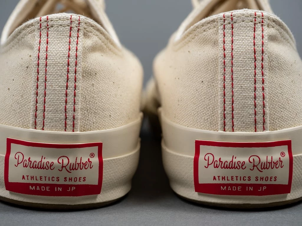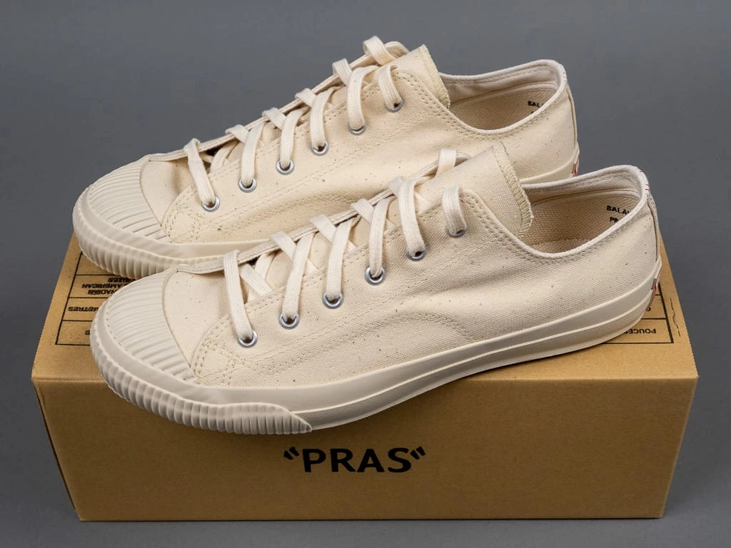 The Shellcap Low Sneakers from PRAS (Paradise Rubber Athletic Shoes) have everything you could want from a made-in-Japan low-top sneaker. They have the bulbous shellcap toe box, and non-slip soles based on 1950s athletic sneakers and feature the kiln-fired vulcanization that can only come from Kurume, Japan. The red stitch and the vintage-inspired heel panel give the sneaker a final pop of colour.