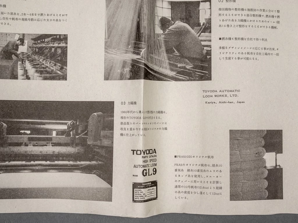 The 100% Hanpu cotton canvas upper is carefully woven in Kojima, using an old Toyoda GL9 shuttle loom.