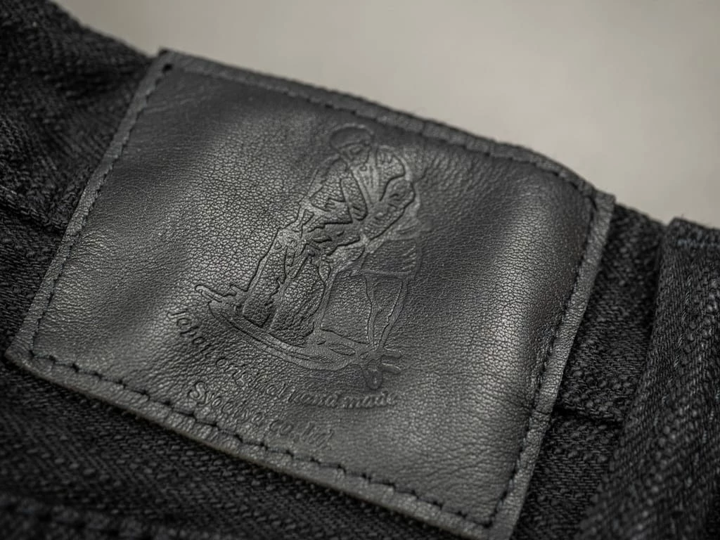 The jeans are made with all the superior-quality Pure blue Japan details such as iron buttons, high-quality pocket bags, heavy-duty bar tacks, long stitching, a custom lambskin black leather patch and the signature Pure Blue Japan “shoai” embroidery (Indigofera leaf).