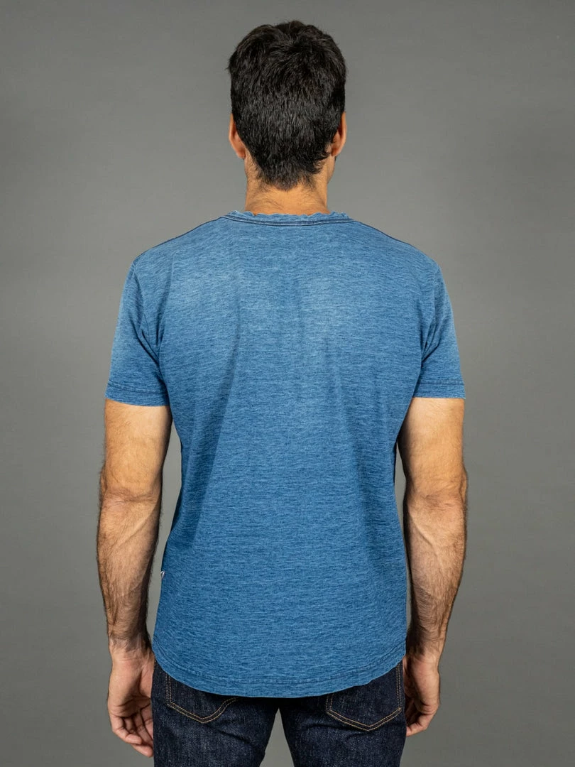 Do you need a solid indigo-dyed T-shirt but don’t want to wait four years for it to fade? This beauty is made with the same textured fabric of the standard indigo version, but it has been carefully treated to produce an excellent sun-faded effect. This 100% long-staple cotton t-shirt was dyed with pure indigo before being completely faded away almost immediately after being dyed.
