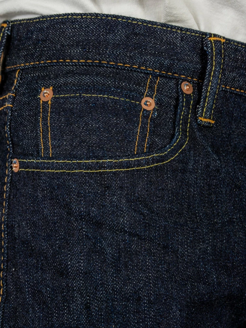 - 14oz unsanforized ultra-low tension Japanese lightweight selvedge denim. It is a one-wash version so expect no shrinkage