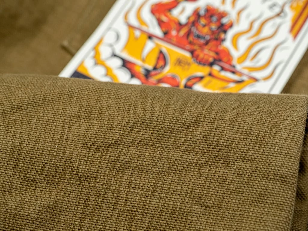 - 14-oz Heavyweight Oxford Japanese Brown Khaki fabric. It is a one-wash version so expect no shrinkage and superior comfort