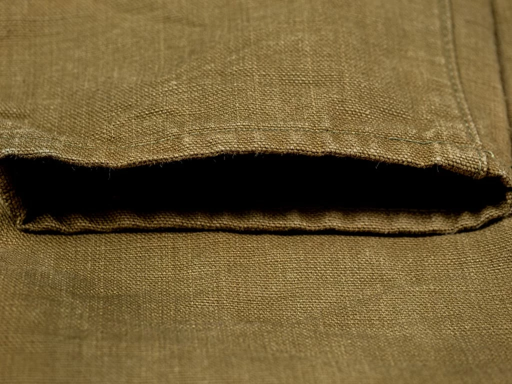 We choose a premium quality off white vintage cotton twill Japanese fabric for the pocket bags to create a beautiful contrast with the Khaki fabric.