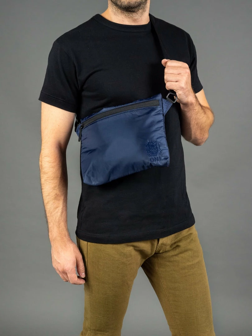 The Sacoche fabric chosen to accompany the collaboration jeans is in a very special navy colour, woven in a triple-layer technical nylon (the same nylon as the mythical flight jackets). The craftsmanship that goes into making this piece is present from the cut of the fabric to the seams, not forgetting a perfect ONI logo embroidery in the bottom right-hand corner.