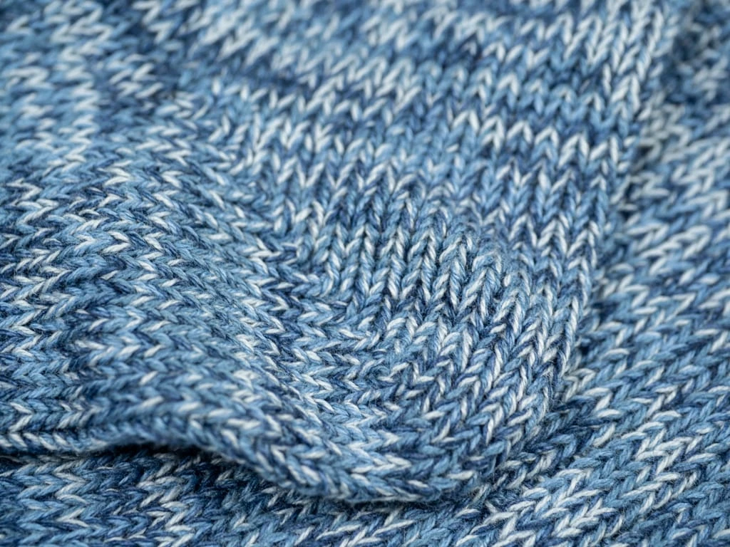 The use of a blend of cotton yarn in four slightly different colours makes these crew socks look like denim. The item also matches well with any types of outfits just like denim clothing, but the colour doesn’t as easily fade as indigo dye. So you can wear the pair anytime without worrying about colour transfers. Made of cotton fabric, the socks keep you comfortable throughout the year.