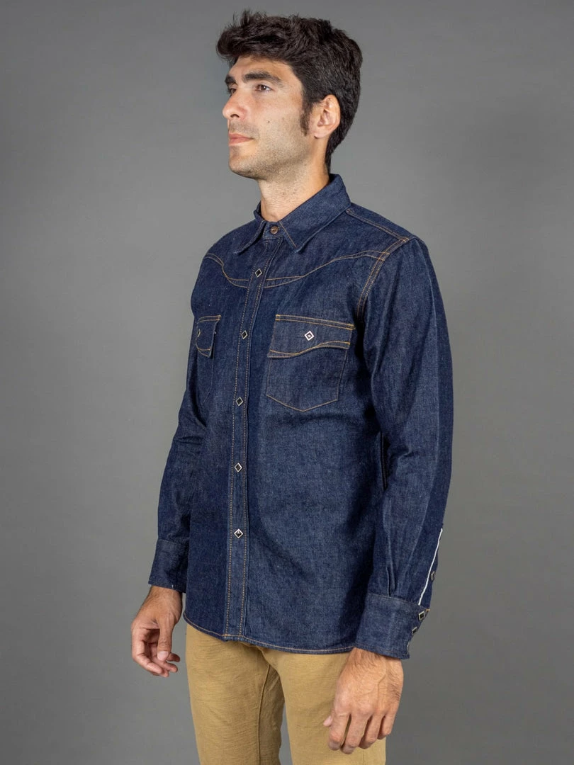 Samurai makes a lot of our favourite staples, and the Hisho Western shirt is a biggie. It is cut from a 10oz Japanese Selvedge “Ear of the sword” Serubitchi Denim, which is well known for its fading properties.