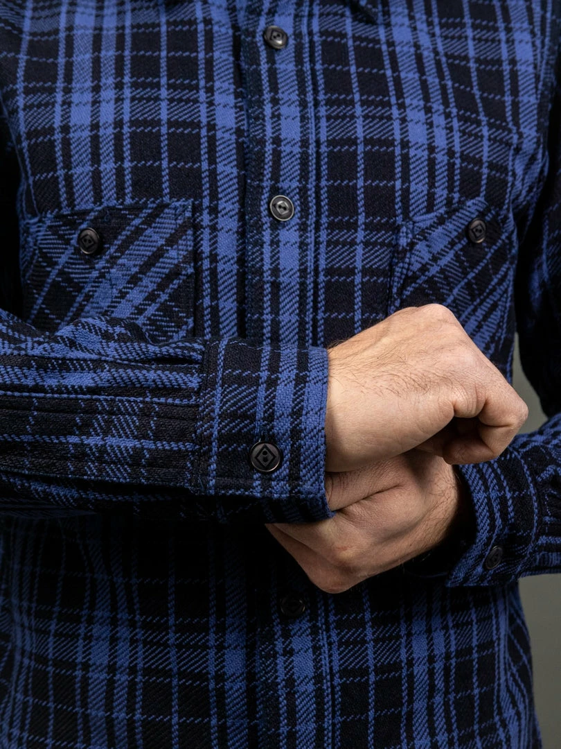 Like any other Samurai garment, the construction is impeccable. It features indigo-dyed buttons, chain-stitched side seams with run-off, a double-needle construction throughout, and reinforced double fabric forearms. In addition, both the asymmetrical pockets and the collar feature a cotton lining.