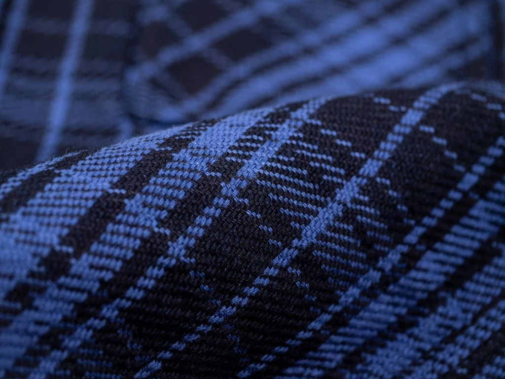 This beauty from Samurai is woven from the same 6×6 indigo yarns they use to create their iconic 15oz denim. However, thanks to the rope dyeing, the indigo threads will gradually fade, developing an electric blue that will perfectly contrast with the purple threads.