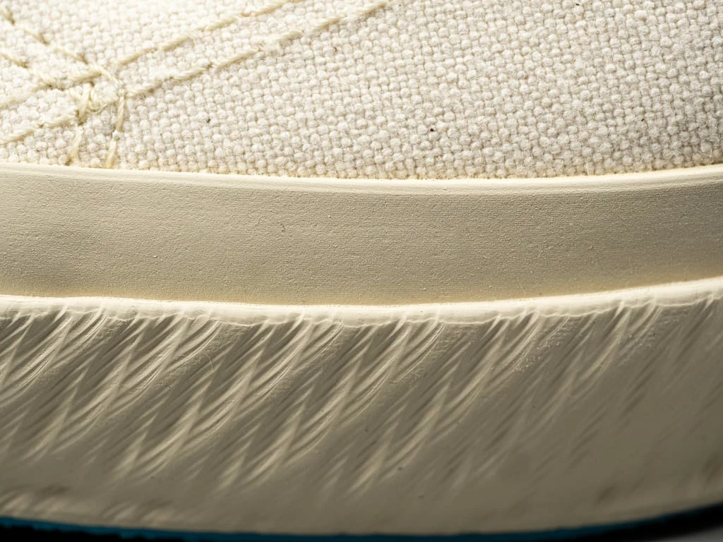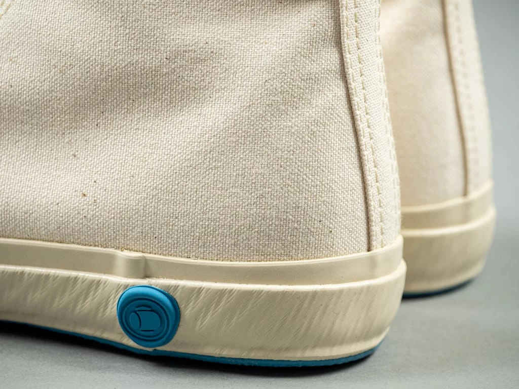 - 100% Kinari Hanpu cotton canvas upper woven in Kojima, using an old Toyoda GL9 shuttle loom.