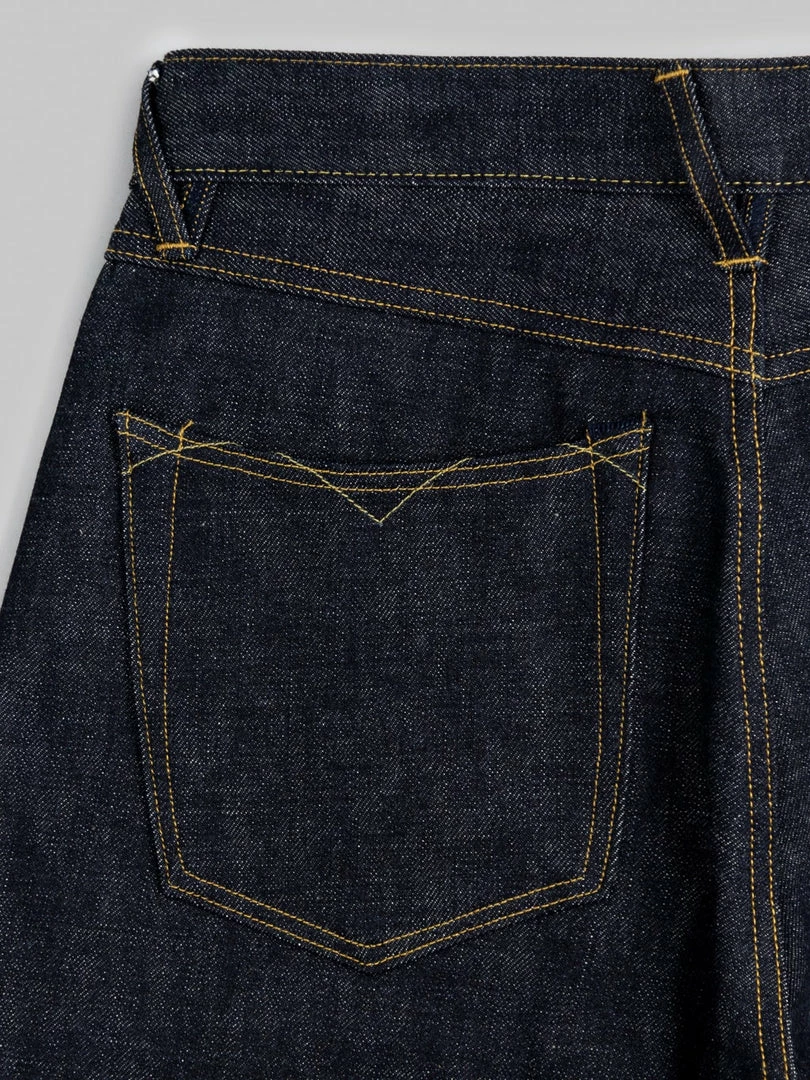 Stevenson Big Sur Jeans remain true to the brand’s form as there is no dearth for details: tucked and angled belt loops and decorative stitching on the signature curved back pockets at the top are just a few. They are made with a double-needle lap seam, and the seam allowance on the front placket is carefully flat fell stitched without using an over-lock seam.