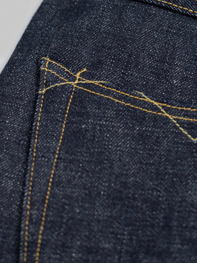 A custom-produced 14oz. sanforized selvedge denim made with long staple U.S. cotton giving the fabric a dry texture. Woven on shuttle looms at the iconic Nihon Menpu Mills, it gives the fabric the distinctive character very similar to vintage denim.