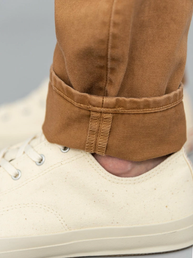 These lightweight jeans are one of the main pieces of this new Kusaki zome SS22 collection. They have been garment dyed with Kakishibu, an all-natural dye from the Heian period -more than 900 years ago- fermented from the juice of unripe persimmons to create the natural khaki coloured dye.