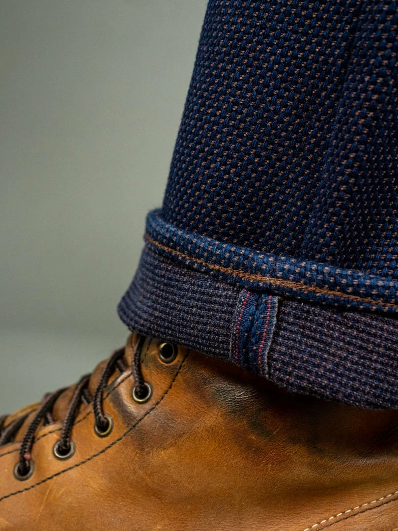 - 14oz 100% cotton selvedge Sashiko fabric. It is a one-wash version so expect no shrinkage