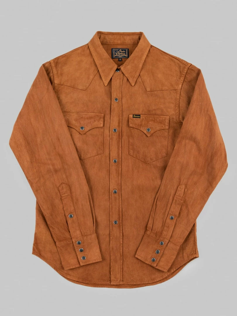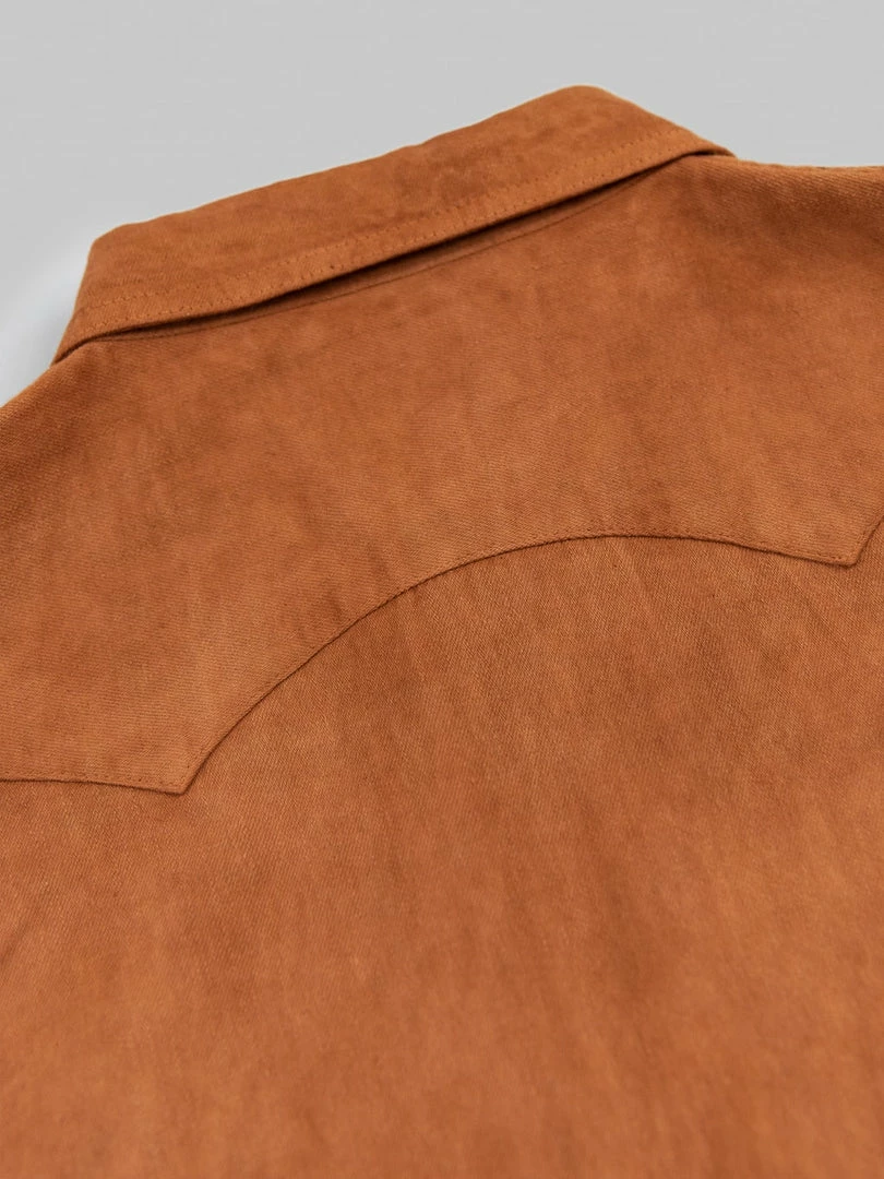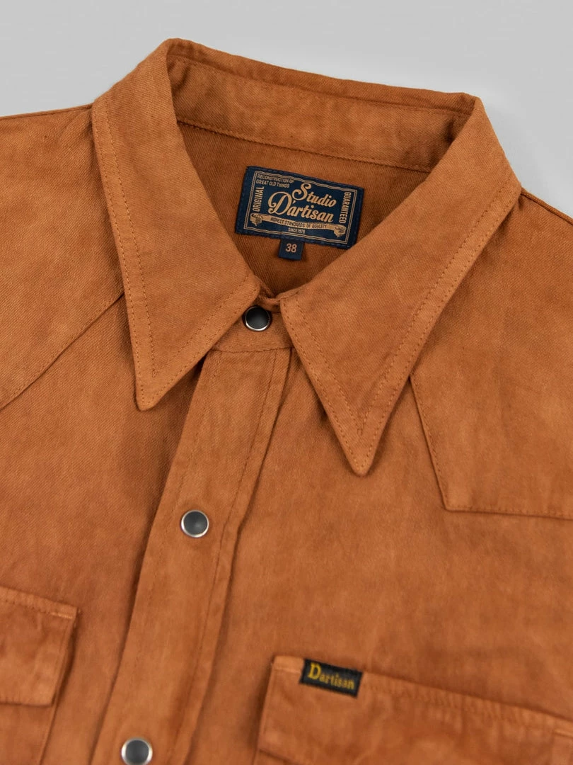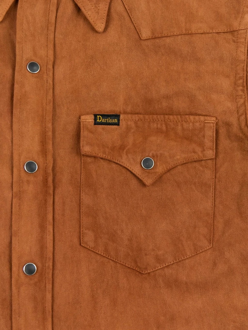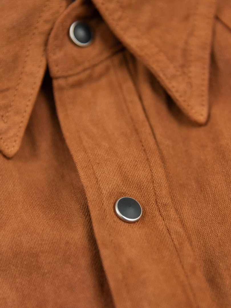 This is, undoubtedly, one of the most memorable western shirts we have ever seen. It is unique because it features a very traditional (1300-year old) and natural method of mud dyeing from Amami Oshima, a collection of islands north of Okinawa, that gives unique brown earthy colour to textiles.