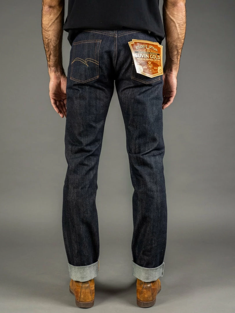 The Studio D’Artisan D1755 Suvin Gold cotton Regular Straight-Narrow jeans are made with Suvin Gold cotton, one of the best and most expensive and luxurious kinds of cotton in the world. This cotton is grown in India and is extreme long-staple cotton with very fine fibres. It’s challenging to cultivate. It needs new seeds to be created each year, which is costly and time-consuming. This results in very soft denim with strong threads.
