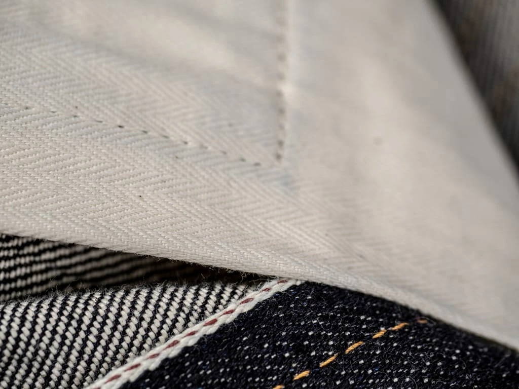 - Warp: Indigo (Supima Cotton) / Weft: white (Suvin Gold cotton)