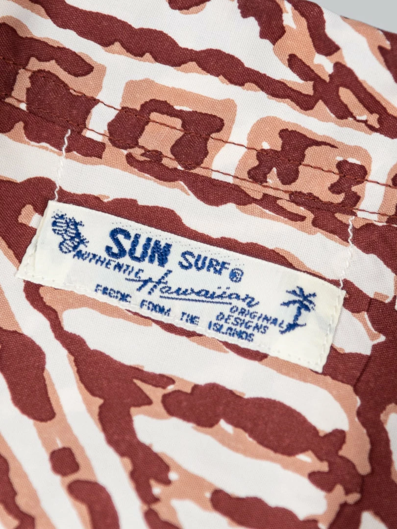 Sun Surf expertly reproduces in Japan the Hawaiian rayon shirts of their golden age from the 1930s to the 1950s. Since its foundation in the 1970s, the brand has collected thousands of such vintage shirts and even analyzed them to manufacture authentic replicas. In addition to the shirt layout designs, their rich and bright colouration is precisely reproduced using traditional printing techniques, such as discharge or over-printing. We are proud of being one of the few retailers outside Japan offering the most authentic vintage-style Hawaiian shirts in the world.