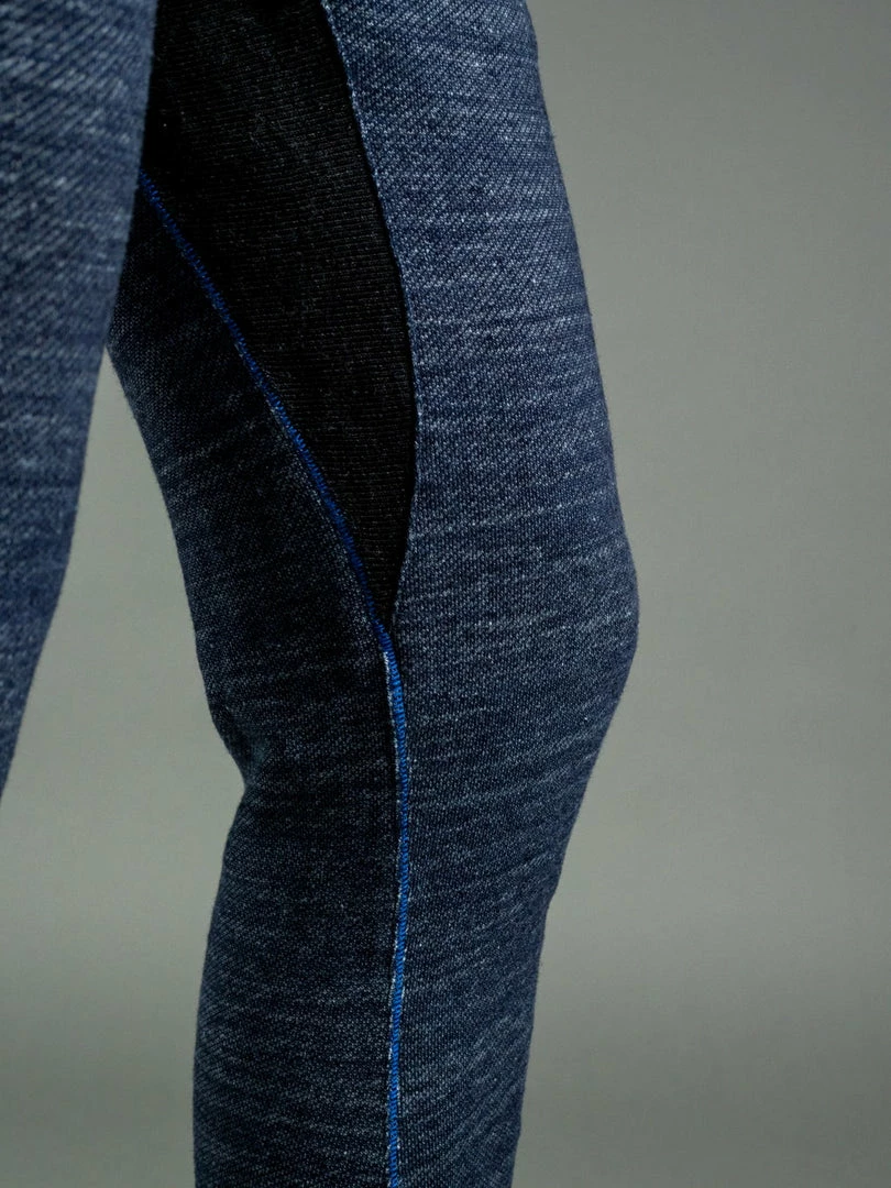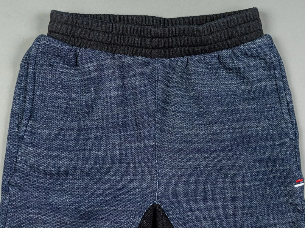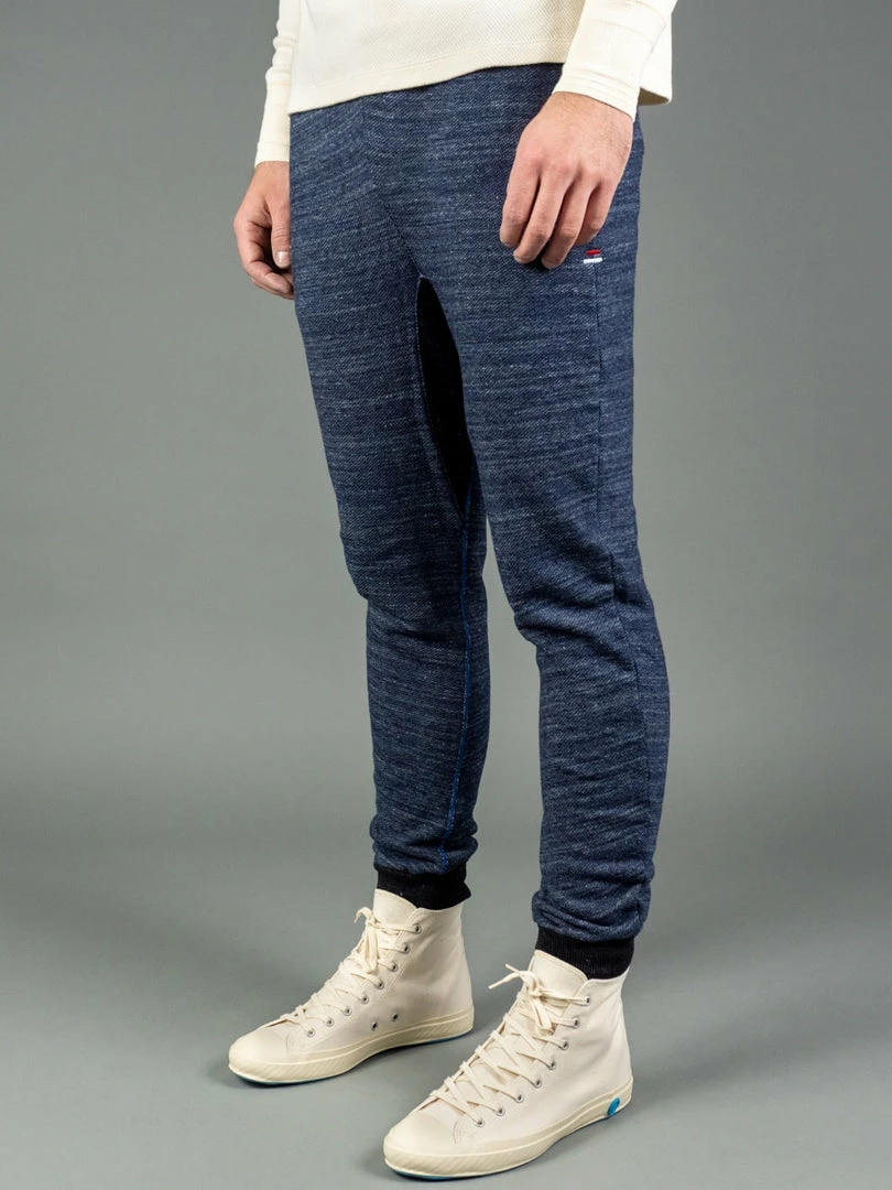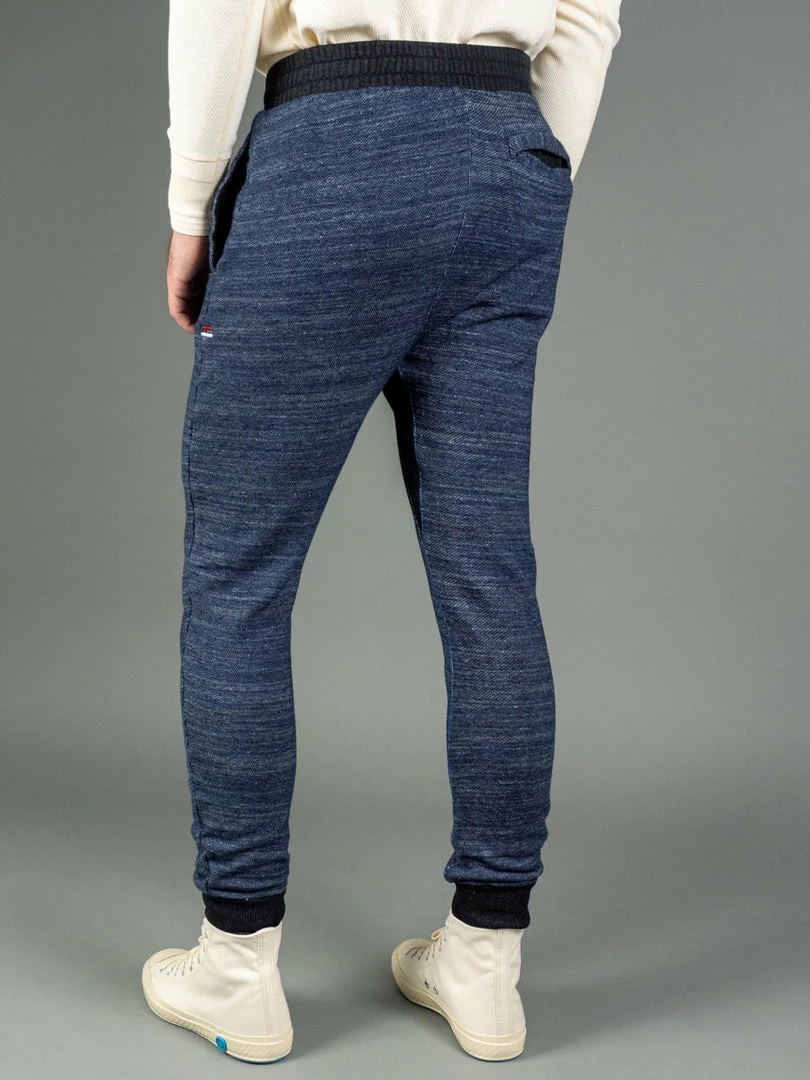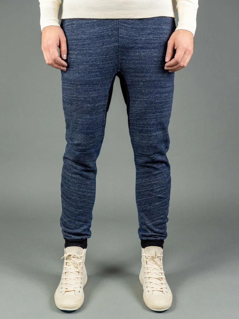 But comfort is not the only thing that stands out about these sweatpants. Dyed with natural indigo and pure indigo, the salt and pepper look will become more apparent with wear. Tanuki calls this heavy loopback sweat fabric “Hayate”, which translates into something like tempest or gale as it has a very dramatic texture. This is a substantial fabric and feels very sturdy yet is very comfortable to wear.