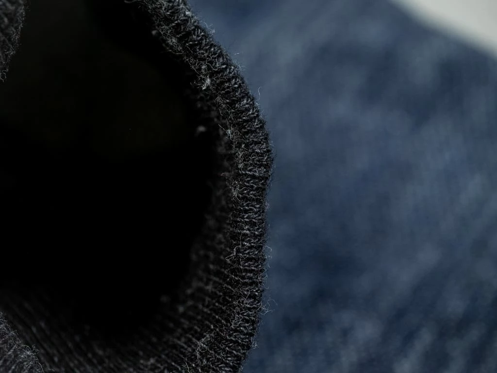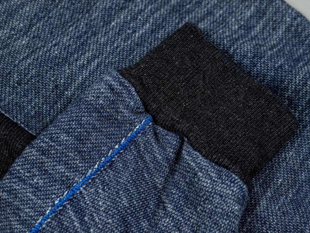 Like all the Tanuki fabrics, this material is entirely made in Japan – spinning, rope dyeing, knitting, and processing are all done in a small Japanese mill. You can expect great fades. The pants are finished with chunky blue side seams and black sumi dyed ribs and fitted with elasticated cuffs and a drawstring waist for a personalised fit.
