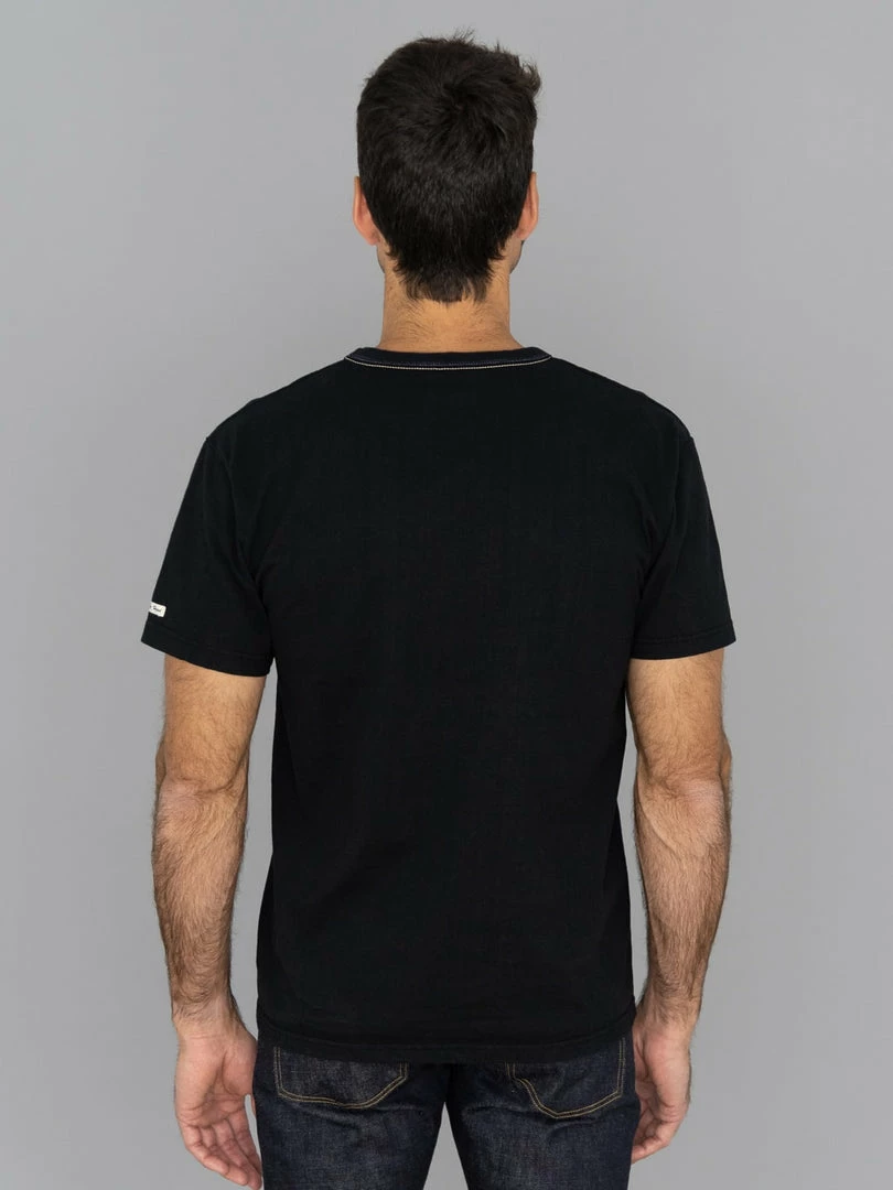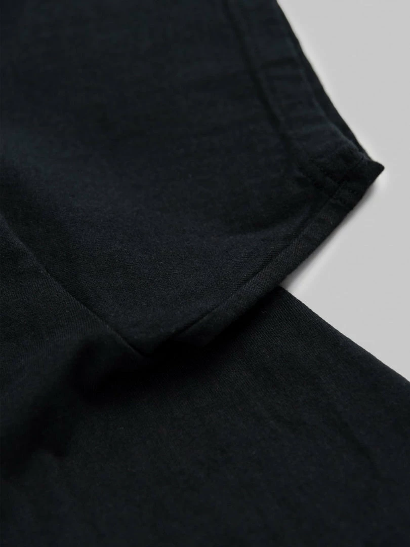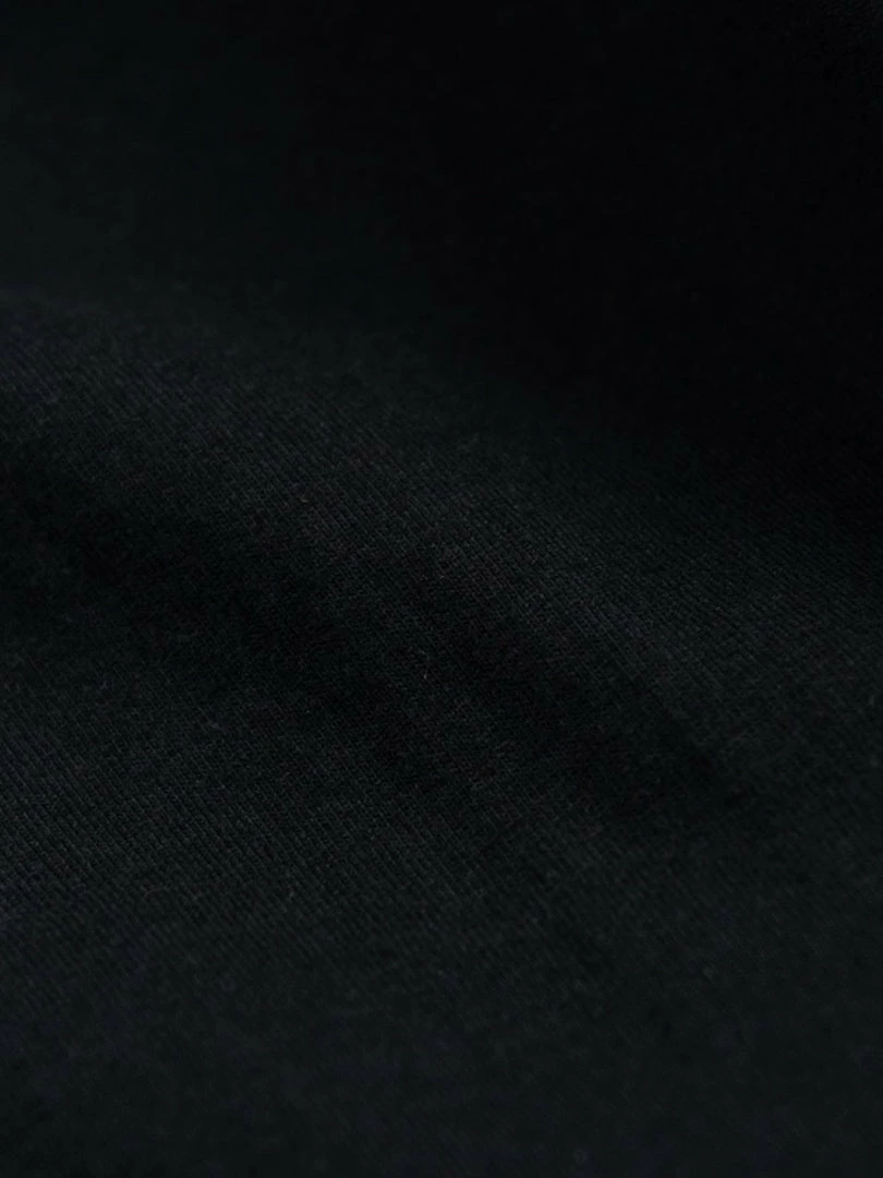 This Loopwheeled (“Turi-Ami”) t-shirt is woven using only premium long-staple cotton in the Japanese Kanekichi Wakayama workshop, one of only two workshops in the world still keeping in operation after more than 100 years the tubular textile production machines that allow seamless garments to be made. The only tension used in the knitting process is gravity, the end result being a knitted fabric with virtually no inbuilt stress or tension. A loopwheel machine rotates at just 24 revolutions per minute, a modern knitting machine in excess of 10 times that. The result is a very soft but strong fabric and the best tee material made today.