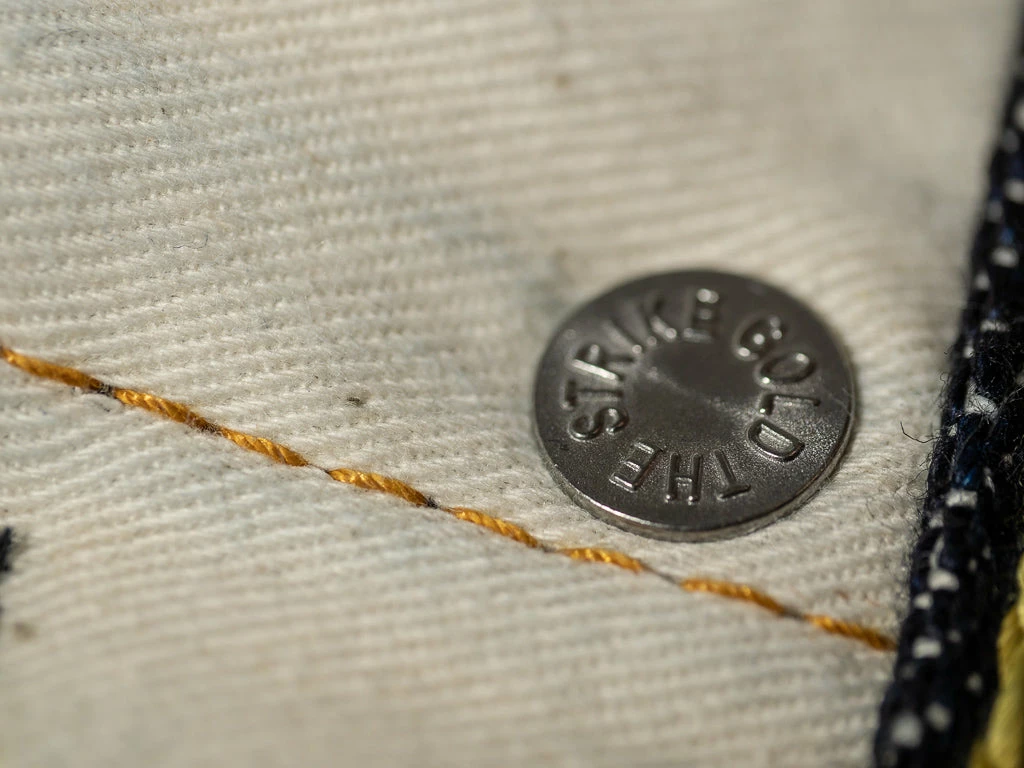 The “SG6109 super slubby” jeans are made of an unsanforized 16.5oz heavyweight slubby and neppy indigo dyed fabric. It is made from 100% Zimbabwe cotton, and Strike Gold have used a super short cotton staple for the weft to produce the material. The staple length refers to the length of the fibres of any given material. In terms of cotton, this is the average length within a sample of a species. Cotton with longer staple lengths tends to produce softer and hairier fabrics than those with shorter ones, but short-staple fabrics tend to have a fantastic rugged and extremely uneven touch.