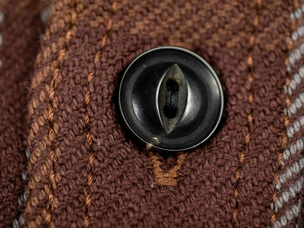 The buttons are made from ivory palm nut with a beautiful gradient tone. Ivory palms are medium-sized-to-tall palms reaching up to a height of 20 m, with pinnate leaves. The “nut” is covered with pericarp, which is removed by animals. They help counter both the destruction of the rain forest and the elephants. For many years the buttons on uniforms worn by U.S. soldiers came from ivory palm nuts. Like so many natural dyes and textile fibres, vegetable ivory has been replaced with less expensive synthetics.