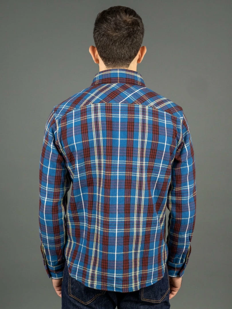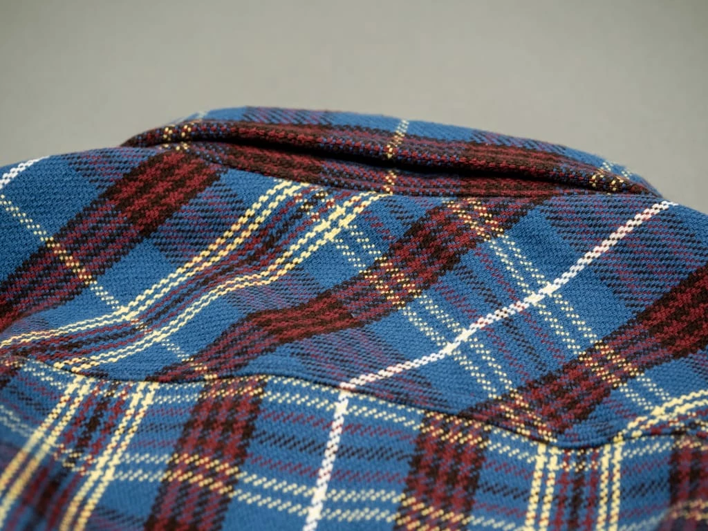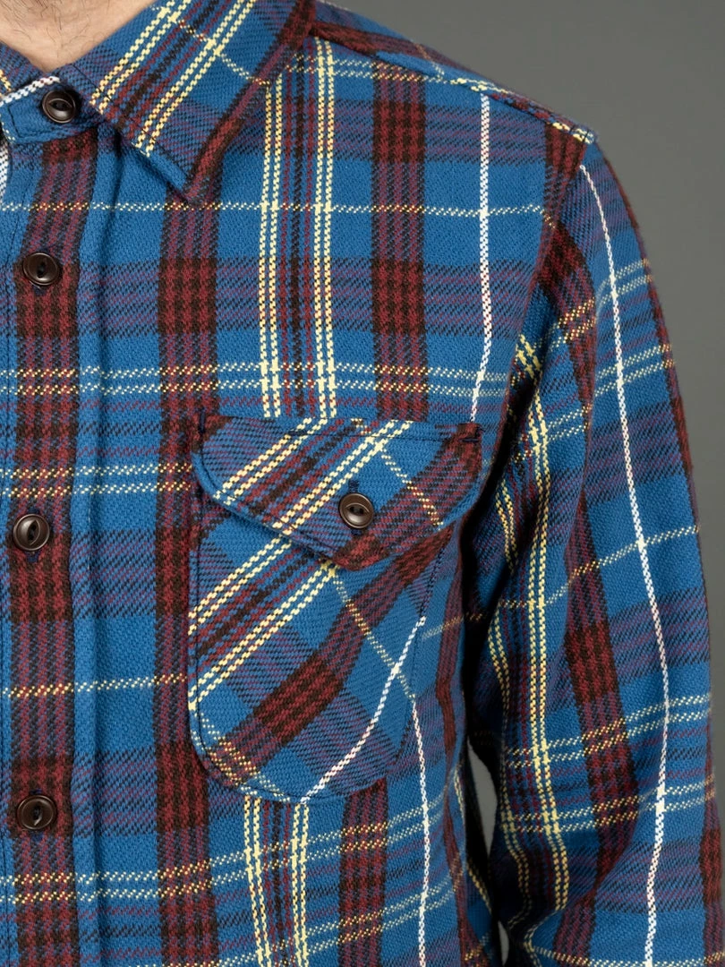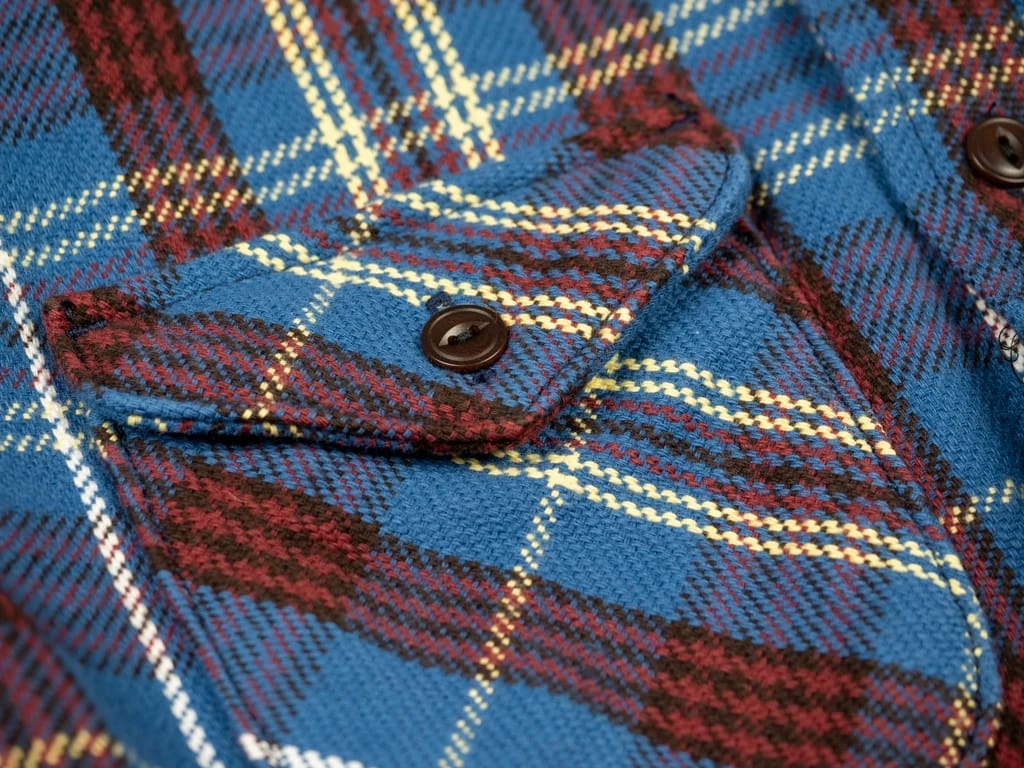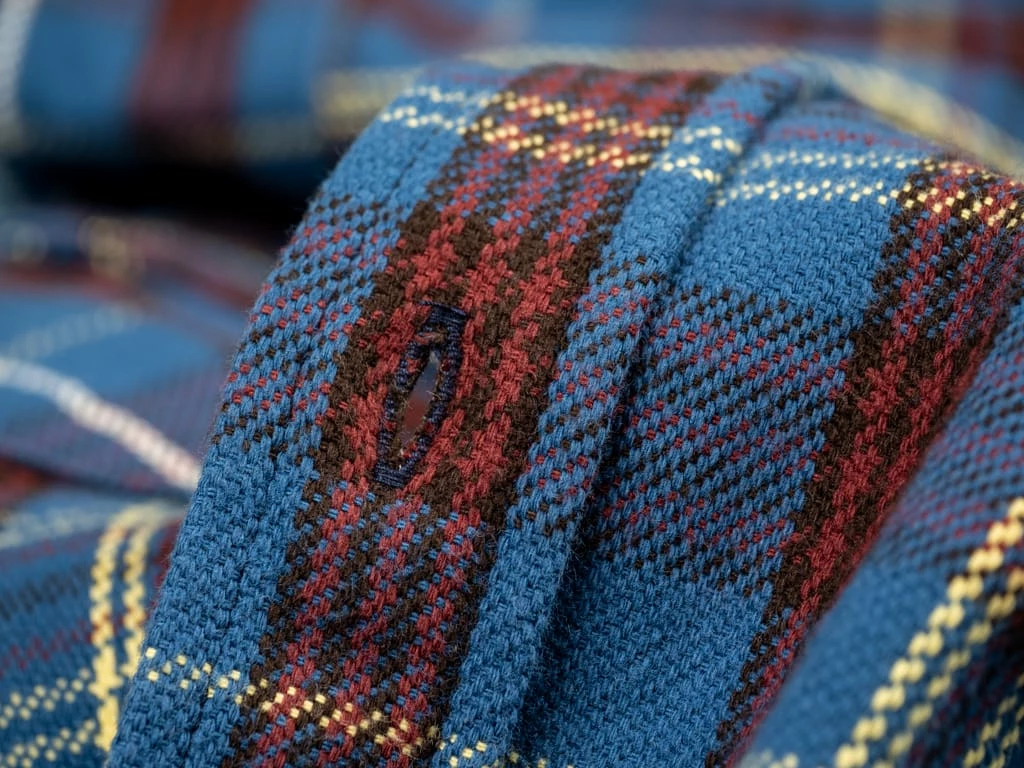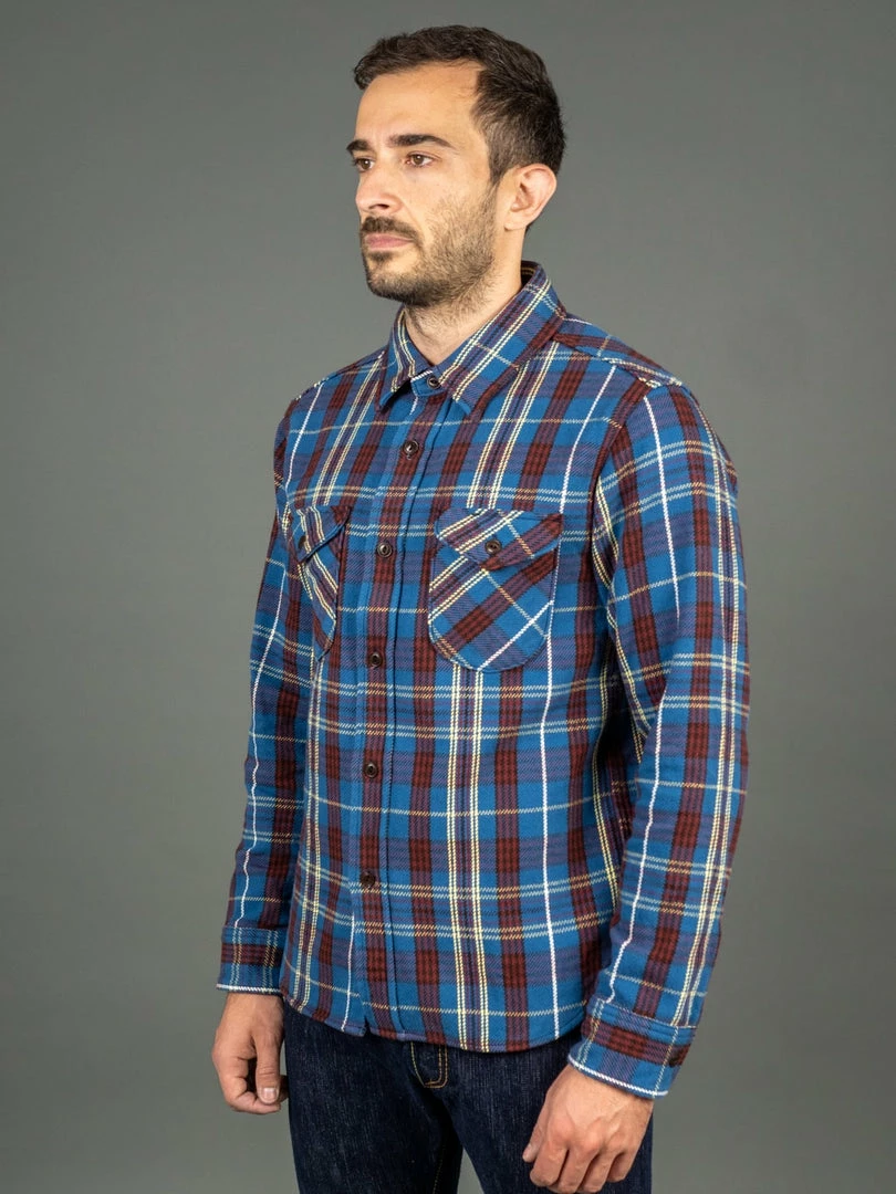 With a 14.5oz fabric, the UES heavy flannel shirt is one of our favourite flannels in the world. The fabric has been woven on old shuttle looms in Okayama by UES Denim, creating a rough exterior and a super-comfortable interior weave.