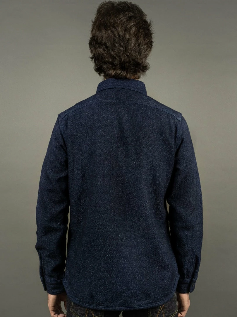 This is a selvedge indigo flannel that has been carefully rope-dyed so you will get amazing beautiful fades. By using the direct dyeing of colored threads, the colors will fade moderately and you can enjoy the soft ageing from continuous wearing and washing.