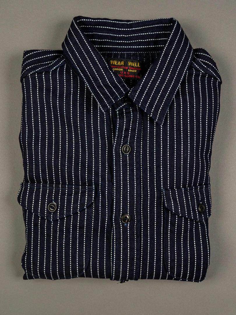 With a 14.5oz fabric, the UES heavy flannel shirt is one of our favourite flannels in the world. The fabric has been woven on old shuttle looms in Okayama by UES Denim, creating a rough exterior and a super-comfortable interior weave. It has been carefully rope-dyed so you will get fabulous fades.