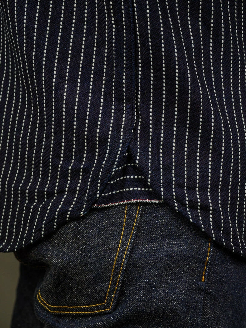 - 100% cotton 14.5oz heavy selvedge indigo flannel. The fabric is sanforized so expect almost no shrinkage