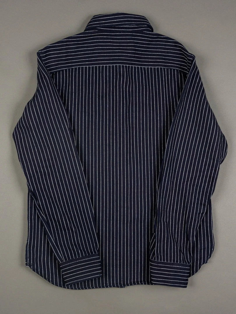The balance between the warp and weft thread is good, and the moderate movement of the fabric improves comfort. The entire shirt is full of superior-quality details and uses an outstanding, highly skilled sewing process. The main body seams have been rolled and double-chain-stitched, thus producing a sturdy garment that can be cherished for a long time. The two rounded pockets are painstakingly crafted, and the lining has been brushed to obtain an extra-soft feel.