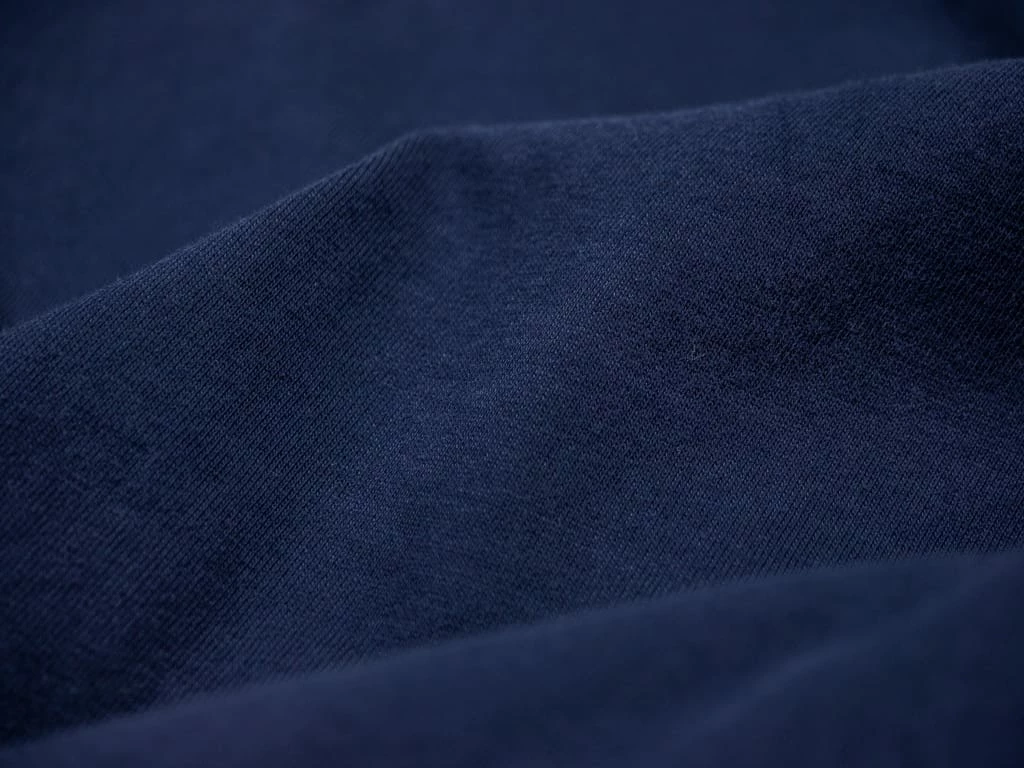 In this t-shirt, Suvin Gold cotton is arranged as a thick thread, and this is called Ramayana. Generally, thin high-grade materials such as Suvin are often made into yarns of fine counts, but to make thick indium fabrics like UES, they spun boldly on thick threads. The fibre length and the thickness of the fibre have the property not to be defeated to the finest sea-island cotton. Therefore, when wearing this Ramayana material, you will be amazed by the smoothness of the touch.