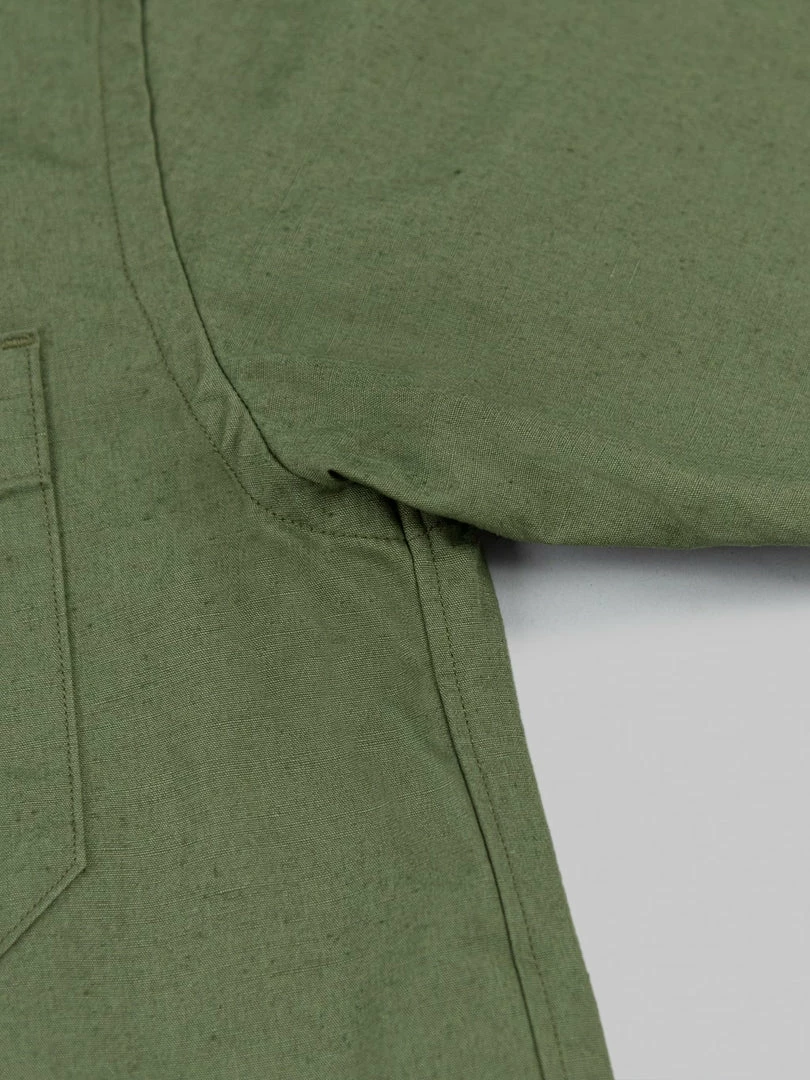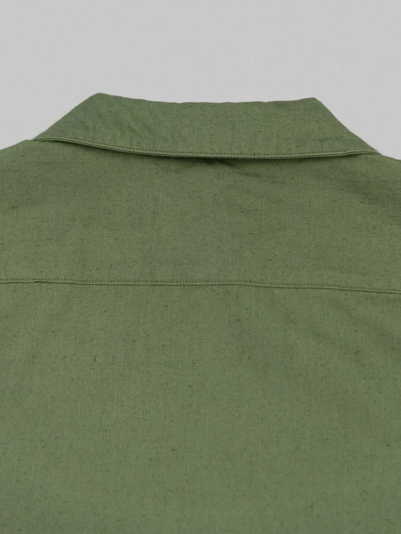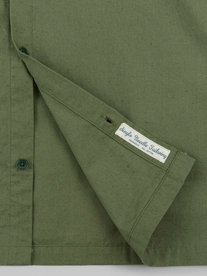The fabric features a firm texture with uneven threads and tons of neps on the surface. The shirt is full of superior-quality details. It features a snap top button and uses an outstanding, highly skilled sewing process with a single-needle construction. Single-needle refers to the construction of an item as being wholly made with a lockstitch machine -which can include flat-felled seams. The counterpart to a single needle is a factory that uses automated equipment.